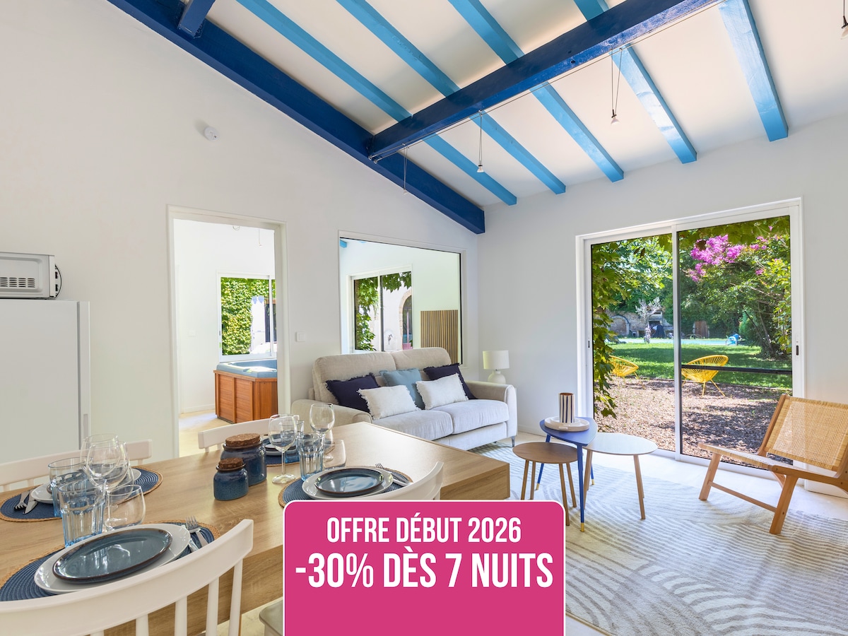 Casa renovada con buen gusto y un encanto acogedor. Jardín de bambú con barbacoa, plancha, salón al aire libre, fogata, jacuzzi durante todo el año y sauna para dos personas para momentos de relax. Con una ubicación ideal, la casa ofrece vistas al Palais des Papes y al Pont d'Avignon, en un entorno tranquilo a solo 8 minutos a pie del centro histórico. Maravillosos paseos te esperan en la isla o por la ciudad. Bicicletas, raquetas y juego de petanca disponibles.