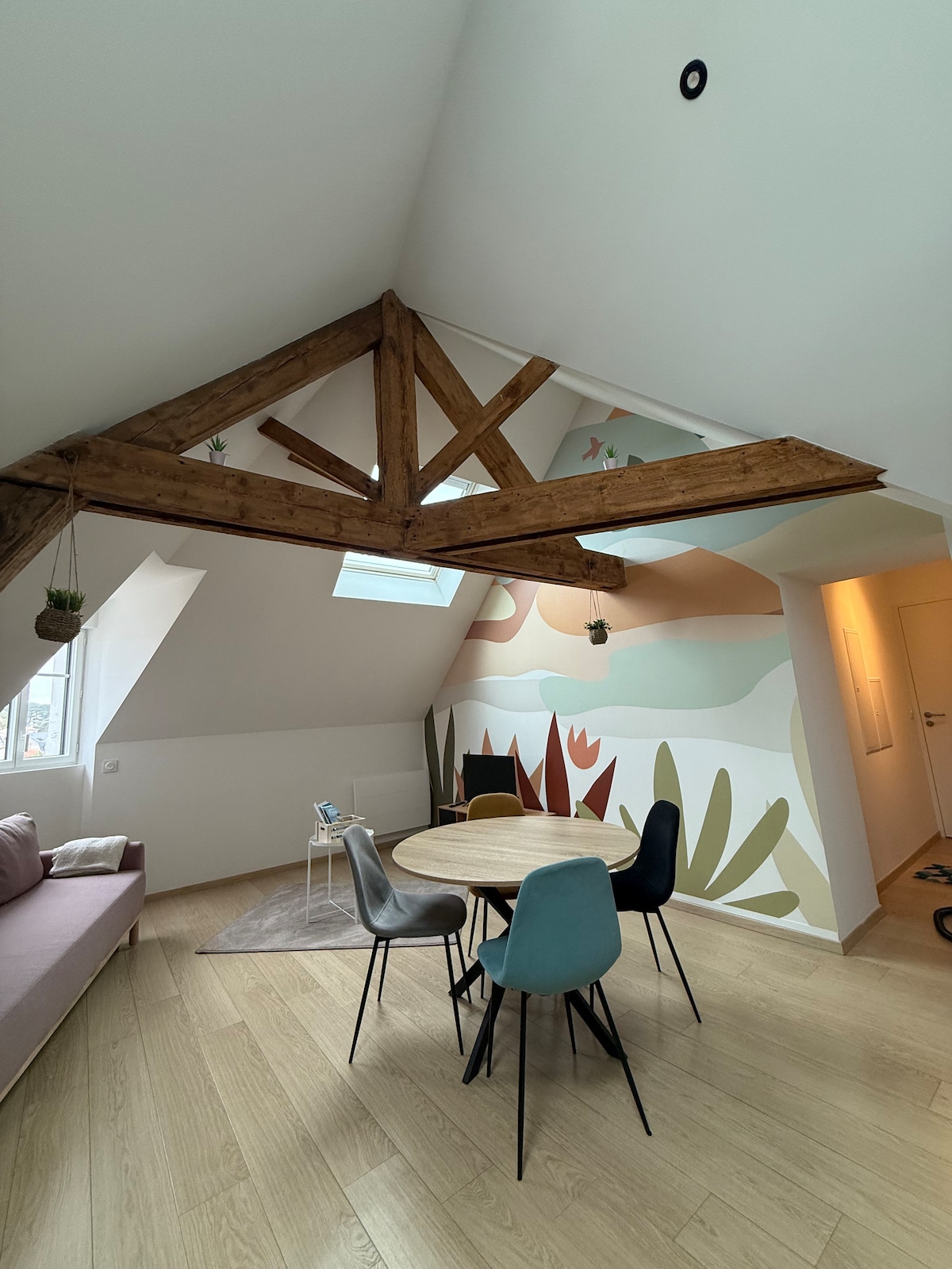 ⸻ ¡Bienvenido a Sam & Léa en Chaumes-en-Retz! Tómate un descanso y relájate en un entorno verde y tranquilo, sin dejar de estar cerca de los servicios y del mar (a 7 km de la playa más cercana, a 10 min de Pornic). Nuestro estudio amueblado independiente y situado en el jardín de nuestra residencia principal, ofrece un espacio acogedor, luminoso y funcional, ideal para una estancia corta para dos. Incluye un salón totalmente equipado y un baño contiguo con lavabo, ducha y WC.