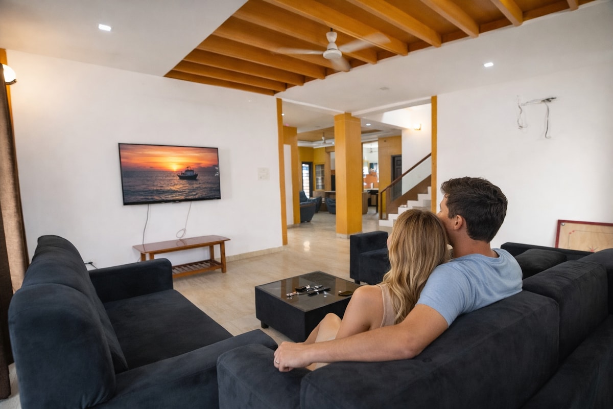 AaraVilla is a fully private 4 bedroom duplex villa in a quiet residential area of Ashok Nagar and Jafferkhanpet. Ideal for families and groups, it comfortably hosts 10 guests and up to 14 with prior intimation. All bedrooms are air conditioned. Amenities include a projector room, fully equipped kitchen, high speed WiFi, OTT, inverter backup, washing machine, and parking for 2 cars. ⚠️Important: One side access road is narrow.Please read Directions to Reach carefully. Large vans cannot enter.