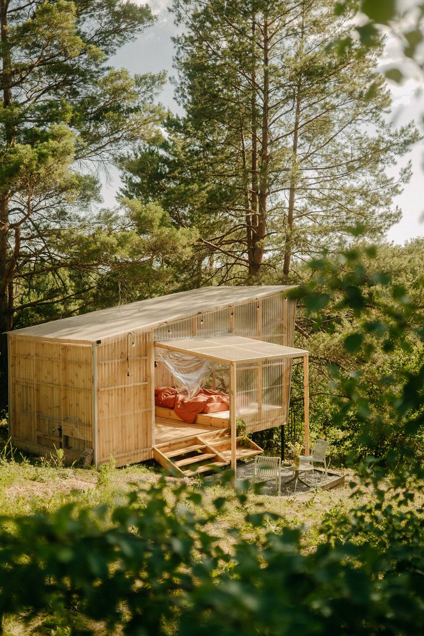 A solo 60 km al sur de Kiev, justo fuera del pintoresco pueblo de Vytachiv, encontrarás The Little Riverbird 's Estate. Rodeado de viejos robles y albaricoques, el pedazo de tierra salvaje abraza al visitante con una sensación perfecta de aventura y soledad. La casa de 75 m2 está orientada, con su gran terraza y ventanas panorámicas, el sol naciente y el majestuoso río Dnipro.