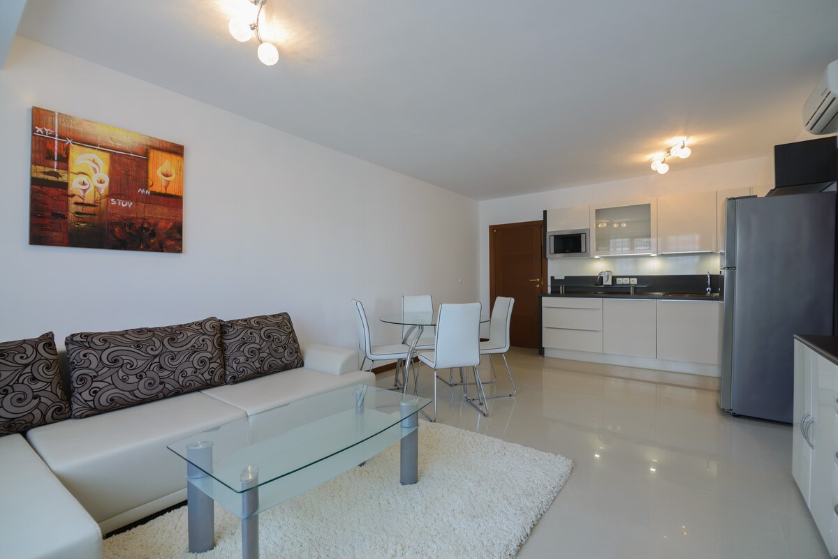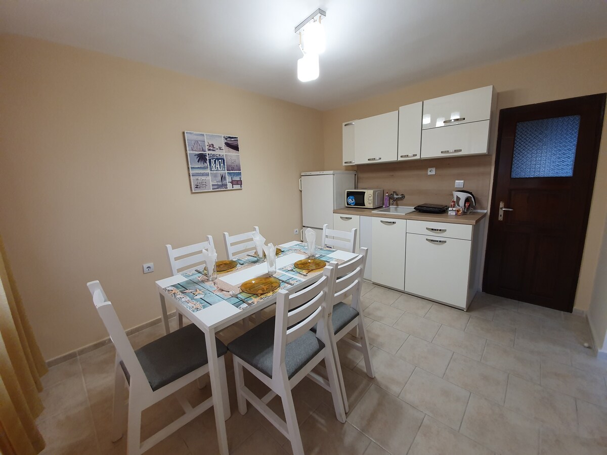 Apartamento de 2 dormitorios casi directamente en el mar. Un pequeño y acogedor complejo con patio y piscina para adultos y niños. Consta de un gran salón con sofá cama, una acogedora cocina con todo el equipamiento necesario, un dormitorio con ducha interna y aseo, un segundo dormitorio, un aseo independiente con ducha y dos terrazas. A 50 metros del mar, a 5 minutos de tiendas (Lidl) y a 7 minutos a pie de cafeterías y restaurantes. Increíble vista al mar, espacioso apartamento para 5 adultos.