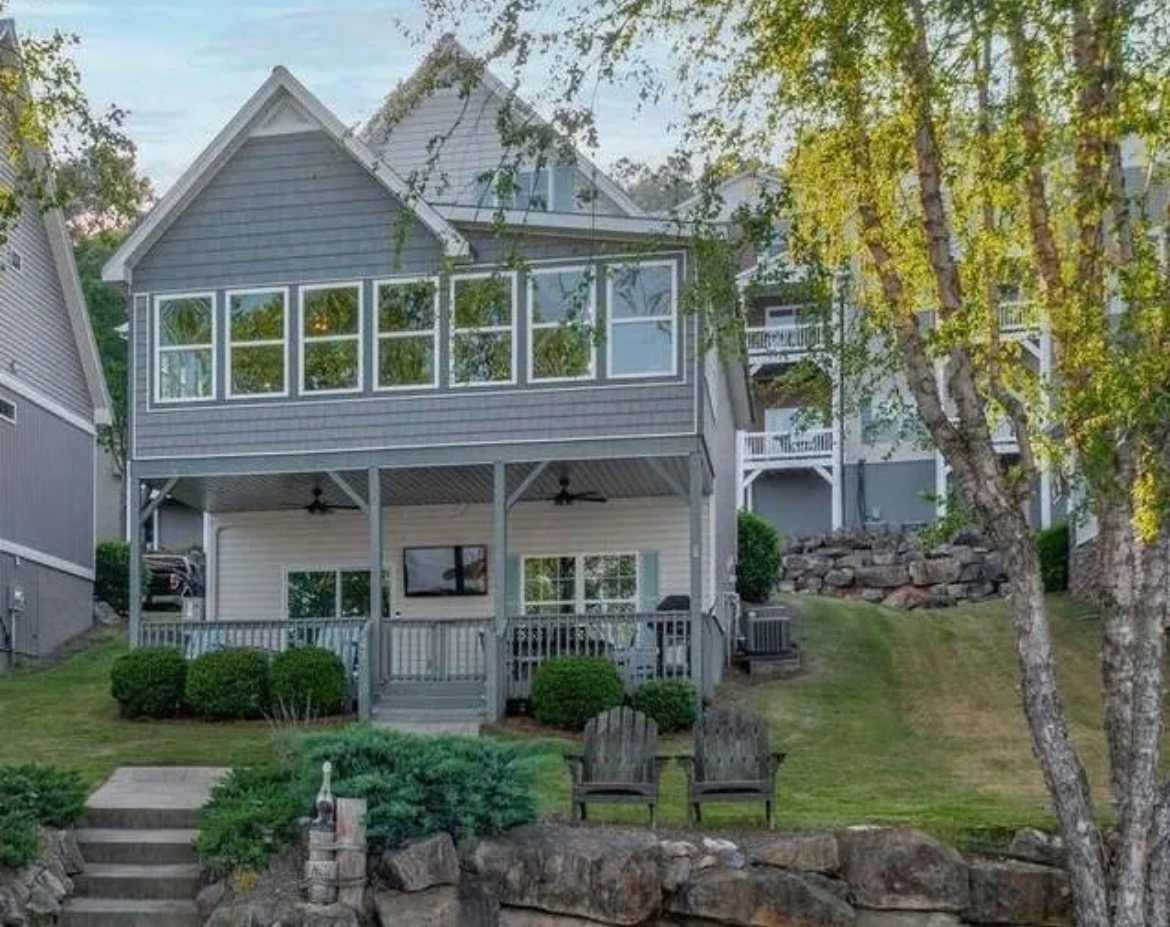 Unidad 10 - Paraíso encontrado Frente al lago • 4 dormitorios • 3,5 baños • Capacidad para 10 personas • Se admiten mascotas Esta espaciosa casa ofrece una sensación palpable de paz y privacidad, gracias a su ubicación adyacente a una tranquila zona boscosa y a un patio trasero a solo unos pasos de su propio muelle en una pequeña cala del lago Weiss. Renovado en 2016, Paradise Found cuenta con encimeras de granito, pisos de baldosas y electrodomésticos de acero inoxidable, salas de estar en los pisos principal y del sótano, y un porche cubierto con vistas al lago desde el piso principal.