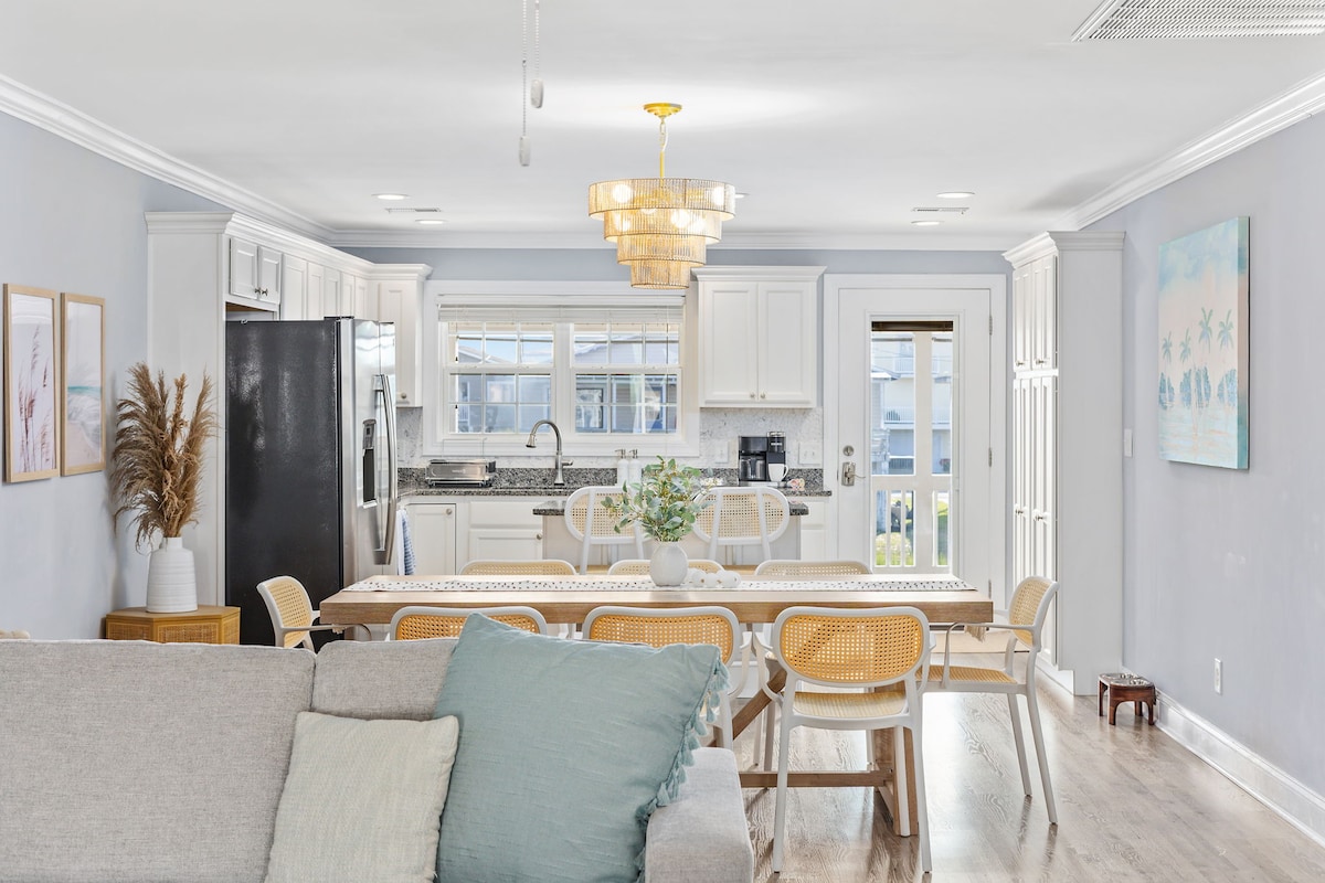 ¡Esta clásica casa de playa elevada es lo más al norte de Cherry Grove que puedes encontrar! Esta casa se encuentra a pocos pasos del mar con un arroyo de marea en el patio trasero que te lleva directamente a Cherry Grove Point. Esta casa es perfecta para tus vacaciones con una familia numerosa, ¡dos cocinas, dos salas de estar/comedor! La casa tiene balcones muy grandes de 9 pies por 27 pies en ambos niveles que ofrecen a los huéspedes vistas serenas del pantano e incluso un vistazo al océano que se asoma.