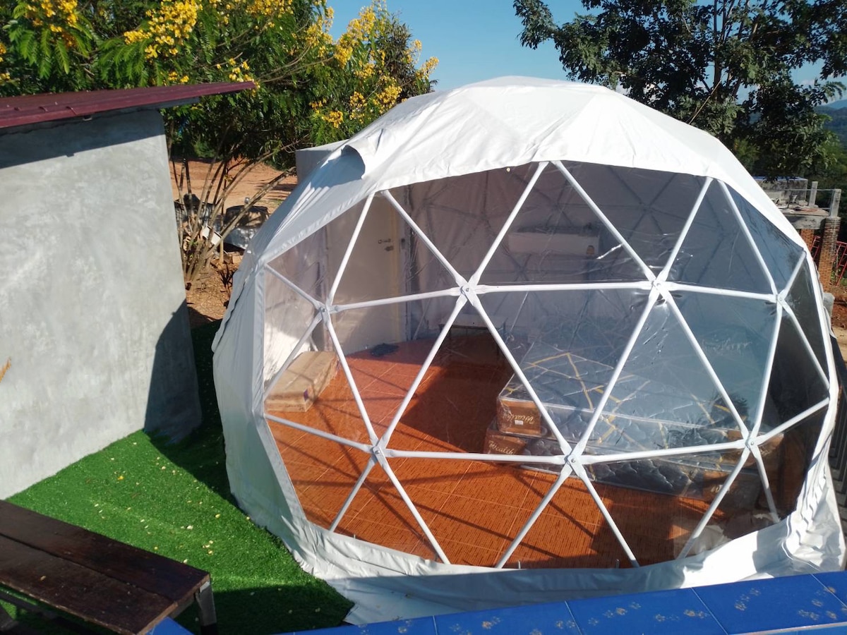 Hermosa y romántica estancia en la naturaleza y la cúpula puede abrir y cerrar las persianas para disfrutar de la vista panorámica con el amanecer de la mañana y contemplar las estrellas por la noche, un baño al aire libre y una bañera.