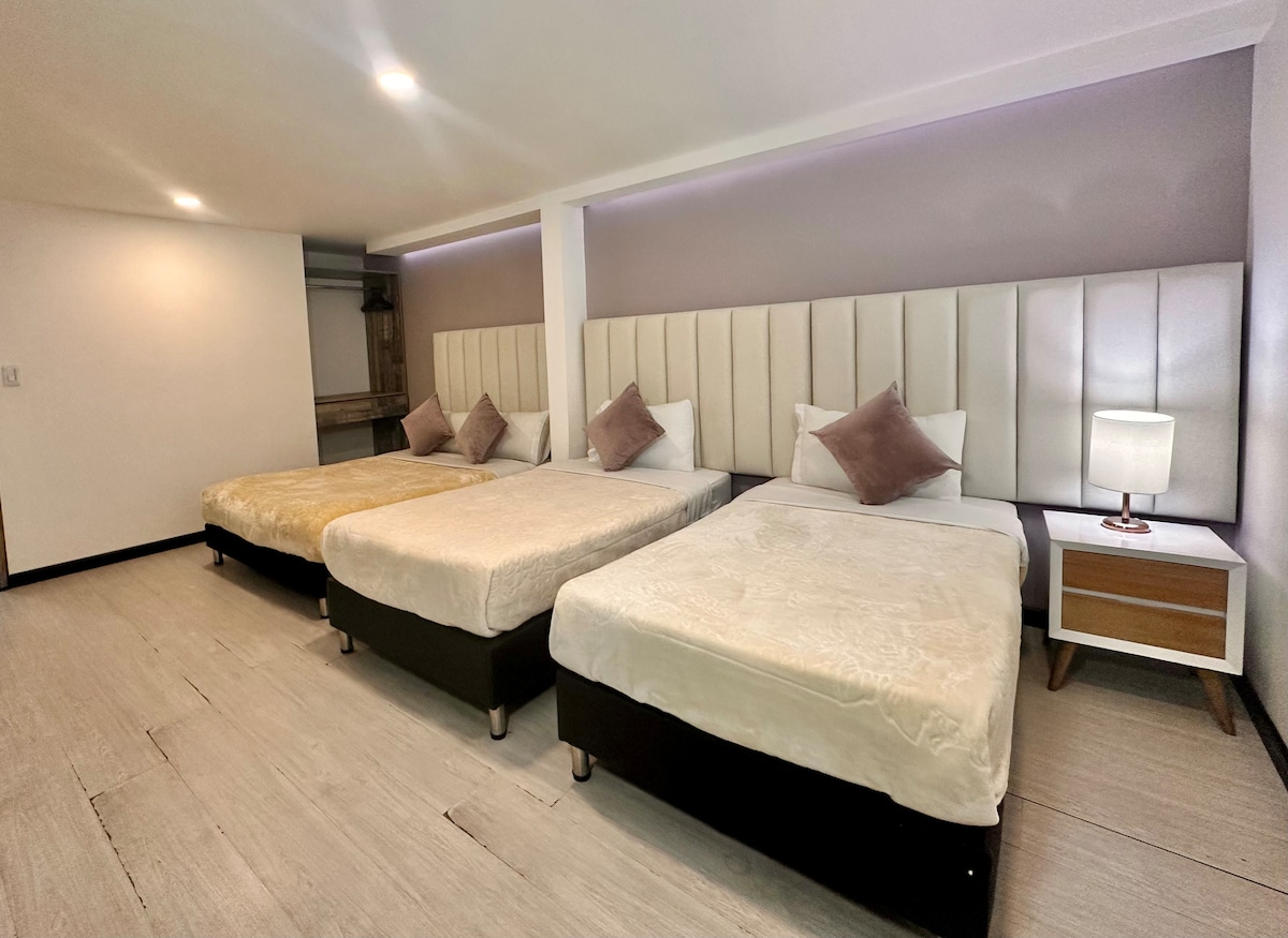 Con un ambiente cómodo, moderno y funcional, ideal tanto para descanso como para trabajo. Con baño privado, TV, Wi-Fi y mobiliario confortable, pensadas para garantizar una estadía agradable y sin preocupaciones. Disponemos de habitaciones dobles, perfectas para parejas, amigos o grupos que desean hospedarse juntos en varias habitaciones dentro del mismo hotel, manteniendo comodidad, privacidad y cercanía. Un espacio tranquilo y bien equipado para descansar, trabajar y disfrutar de la ciudad.