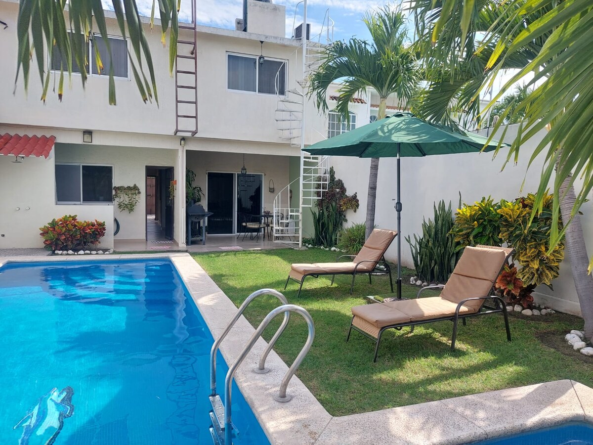 Villa Azul con Alberca Privada y Jardín