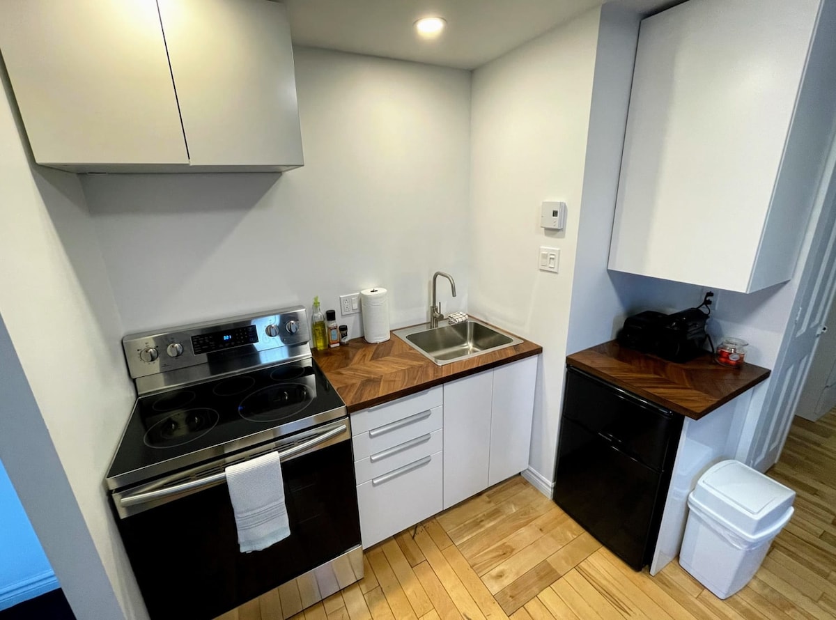 Cómodo apartamento con capacidad para al menos 4 personas. Posibilidad de acomodar a 1 persona más por un suplemento (30 $ más por noche) La tercera habitación incluye una cama de campaña Muy cerca del centro de la ciudad y a pocos minutos a pie de una tienda de comestibles y a unos 10 minutos a pie del corazón del centro de la ciudad, donde se encuentran muchos restaurantes,tiendas,cafeterías,SAQ,etc. Fácil acceso al carril bici.