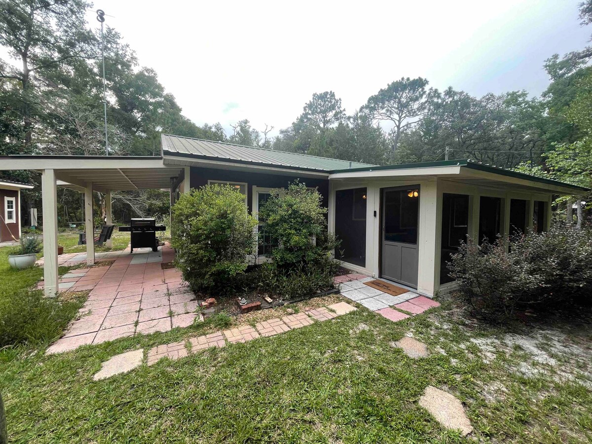 Ubicada en 10 hermosas hectáreas en un entorno rural, olvídate de tus preocupaciones y relájate en esta tranquila y espaciosa casa de huéspedes de un dormitorio. Disfruta de tu café de la mañana en tu porche privado mientras ves el amanecer, o déjate abrumar por las increíbles estrellas por la noche. Cuando estés listo para la aventura, visita la histórica Cedar Key, o haz senderismo, nada y busca manatíes en las cercanas Manatee Springs. Pasea en kayak o en metro por el río Ichetucknee o visita los muchos manantiales cercanos. ¡Es un paraíso para los amantes de la naturaleza!