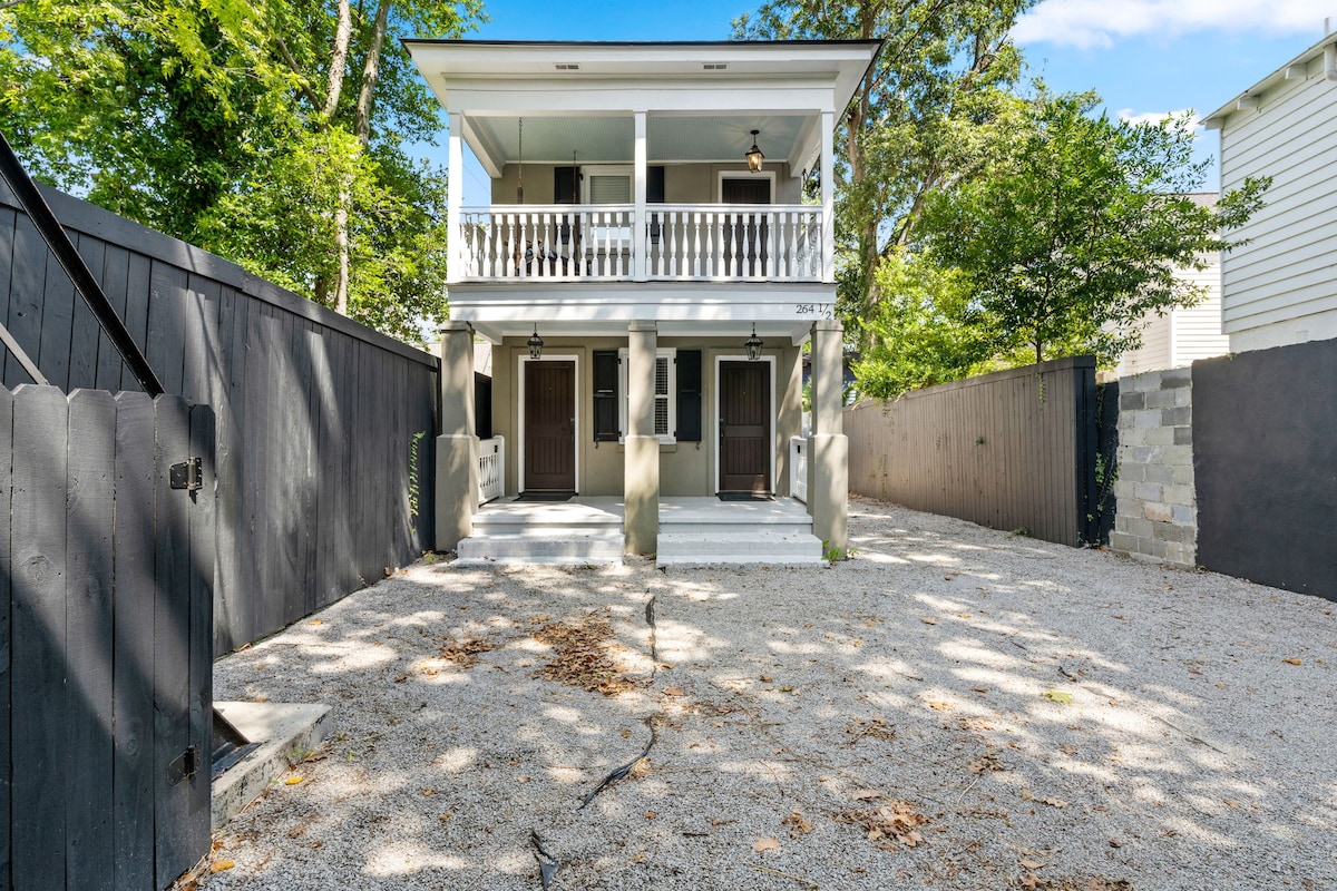 Unwind and enjoy generous space in this historic retreat. A large private piazza overlooking the backyard offers the feeling of having your very own Charleston dream home. Built circa 1850 and converted to apartments over a century ago, this farmhouse features expansive rooms with original moldings, mantels, and hardwood floors. A thoughtful restoration blends modern conveniences, like an updated kitchen and bath, with the timeless charm that defines Charleston.