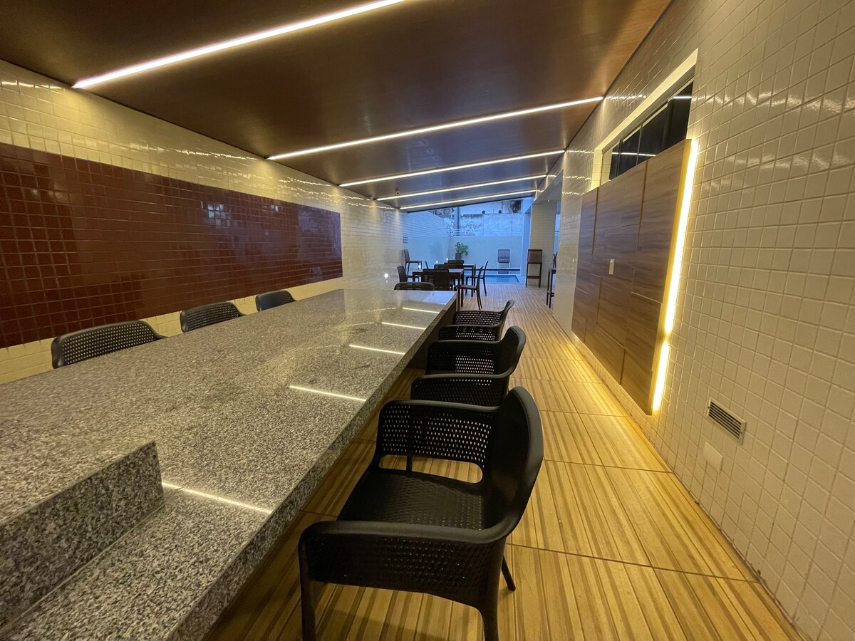 Apartamento, muy bien equipado y súper seguro, ubicado en una posición estratégica cerca del centro de la ciudad Bien ubicado: hospitales, gimnasios, supermercados, panadería y restaurantes. El edificio está a 8 minutos de Vila Sítio São João y a 6 minutos del Parque do Povo. Es 1 habitación con cama doble, colchón y aire acondicionado, todo nuevo esperándote. El edificio cuenta con piscina y gimnasio, garaje, ascensores y conserjería las 24 horas. NOTA: NO SE PERMITEN VISITAS.