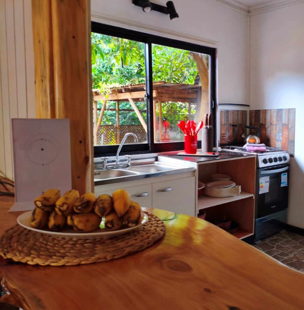 Bella, cómoda y amplia cabaña en barrio residencial, cerca de todo, muy tranquilo y seguro; ubicada en segundo piso con un cómodo living, cocina, baño, una habitación y terraza techada. Small cabin/apartment in second floor, fully equipped, very beautiful and modern with a nice, spacious balcony.