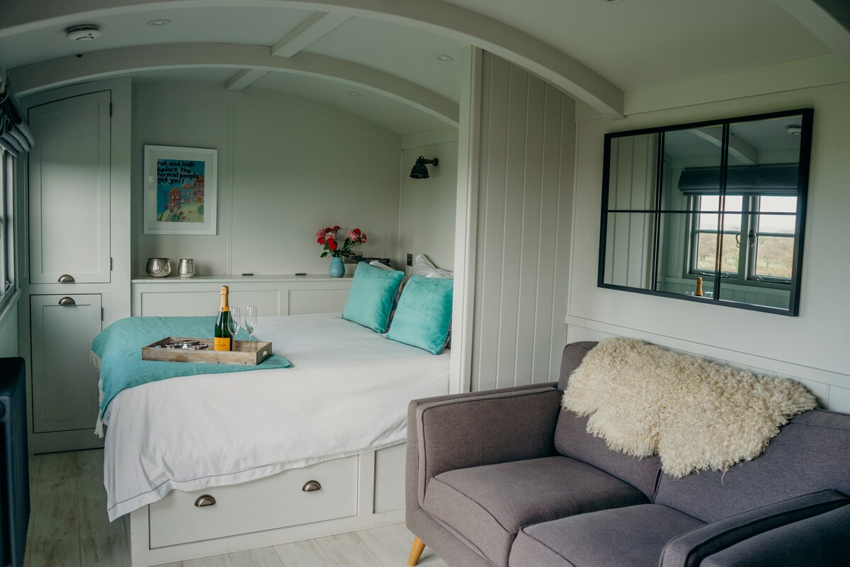 Este espacio luminoso y aireado tiene mucho carácter, con vigas de roble a la vista y un suelo de madera de roble. Una ventana de cristal en el techo ilumina la habitación y te permite contemplar las estrellas desde la cama por la noche. Una antigua cama francesa da un toque romántico a la habitación con ropa de cama fresca, hay un baño y una lujosa bañera antigua de doble extremo. Los huéspedes tienen uso exclusivo de «The Loft», con una cocina y comedor y también pueden reservar una experiencia de sauna privada o una sesión de bañera de hidromasaje privada con leña.