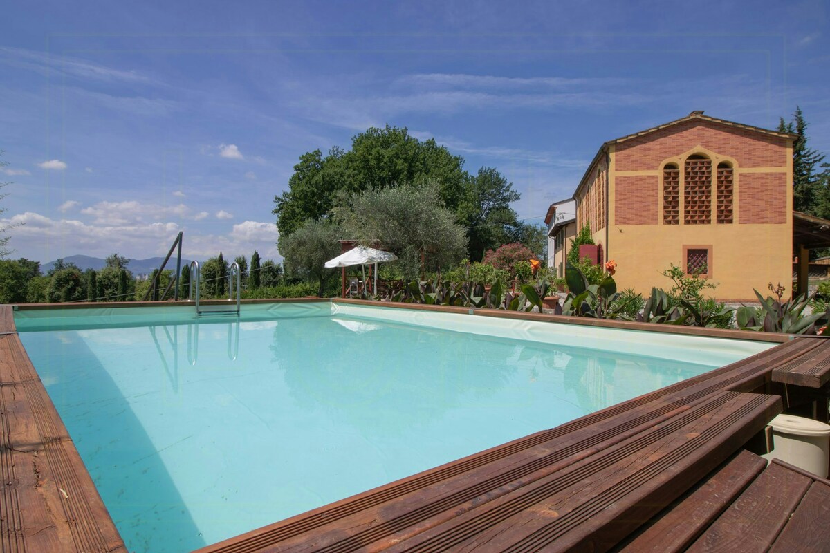 Nuestra nueva villa «Colle di San Gemignano» está construida con todas las comodidades modernas, pero con el encanto de un antiguo granero típico de la Toscana, completamente inmersa en el verde de las colinas, donde podrá disfrutar de la paz con los únicos ruidos de la naturaleza, en total relax, lejos del caos y el frenesí de las grandes ciudades. La villa Colle di San Gemignano se encuentra sola en una colina, rodeada por un gran olivar con piscina y solárium de madera, en sintonía con la naturaleza.