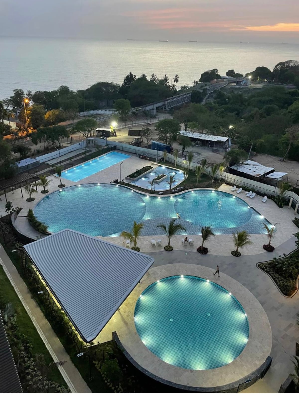 Una nueva forma de disfrutar Santa Marta con exclusividad y confort. Vive la experiencia en un sitio nuevo con piscinas, jacuzzi, restaurante y más, en un entorno moderno y seguro. Ubicado frente a una playa hermosa y tranquila, nuestro aparta suite en el piso 8 ofrece balcón con vista al mar, cocina completamente equipada, aire acondicionado, una cama doble y otra sencilla, baño, wifi y una barra de comedor. El lugar ideal para descansar, relajarte y vivir una estadía inigualable en el Caribe.