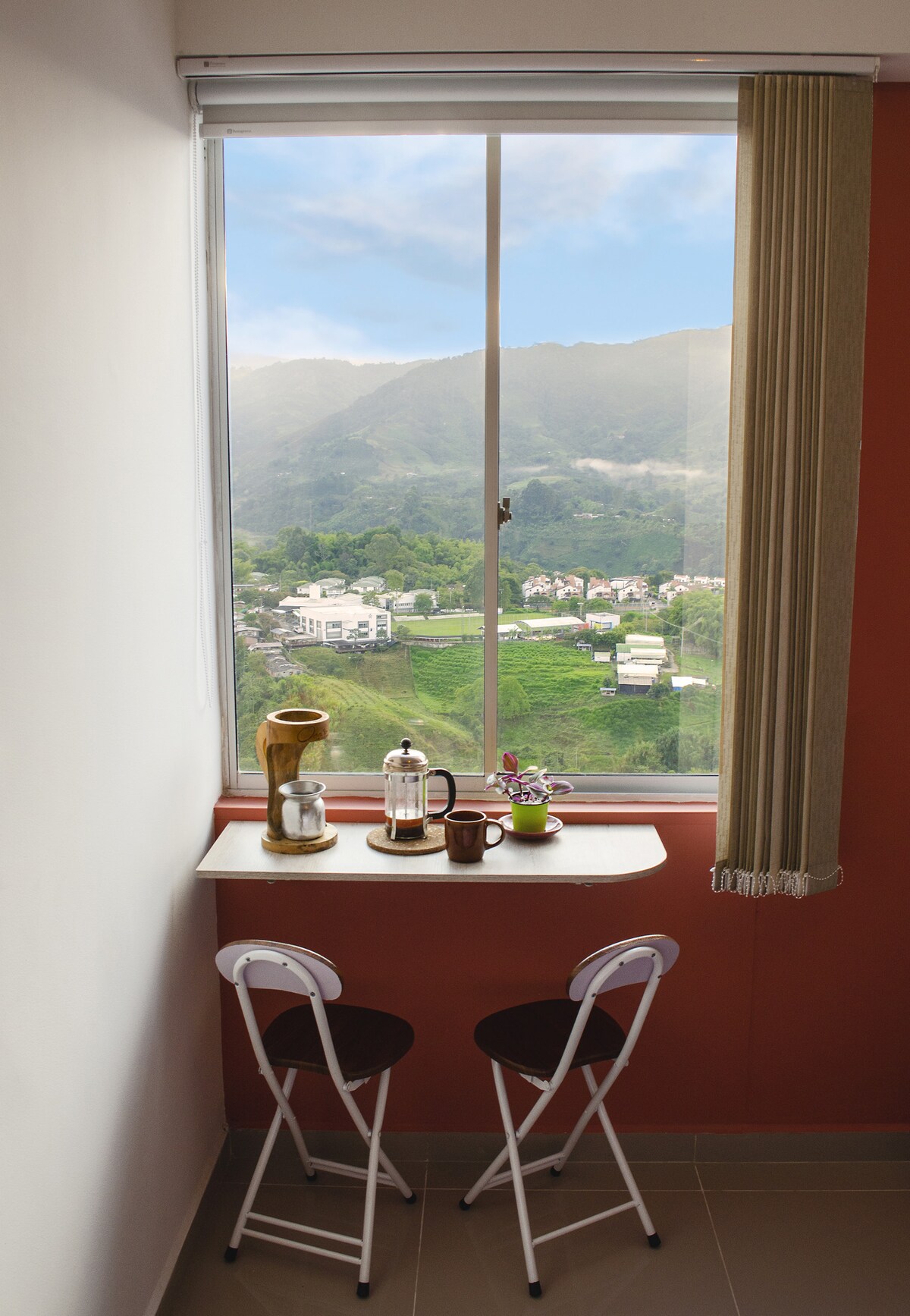 Hermosa vista a la montaña cafetera, Cabaña manaos