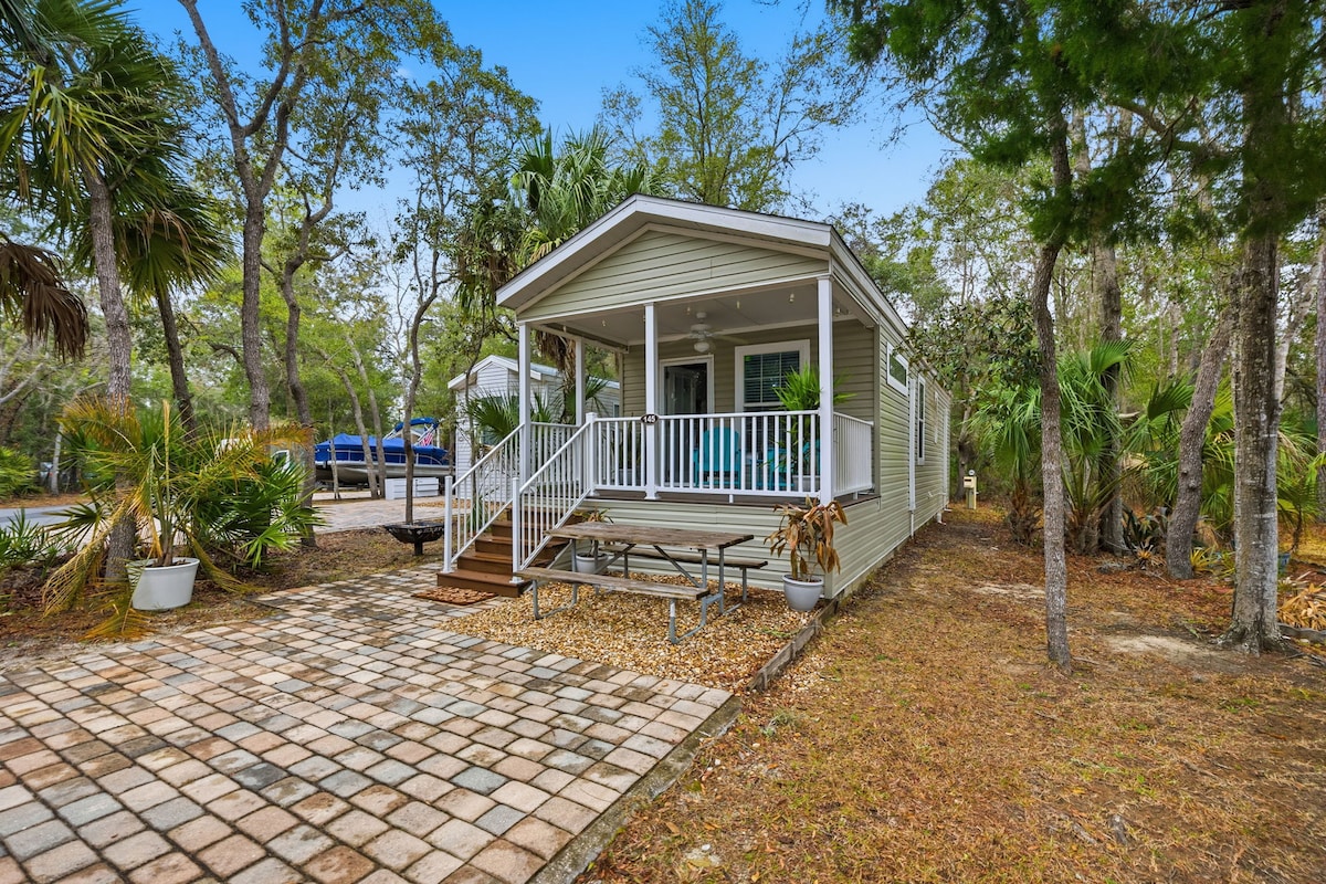 Casa de vacaciones de lujo de alta gama con loft. Diseño moderno rústico. Comunidad amigable con carritos de golf. Cerca de manantiales, tiendas, restaurantes. Entorno tranquilo para disfrutar de la costa del golfo. Bienvenido al barco/remolque. ¡Pequeño parque para perros vallado a 10 pasos de distancia! Alquiler de carritos de golf cerca. El lado más emocionante de la costa natural. Muchas actividades, bingo, juegos de cartas, mesa de billar, música, karaoke, fogata comunitaria con columpios. Lavandería en el sitio. Barrio amigable.