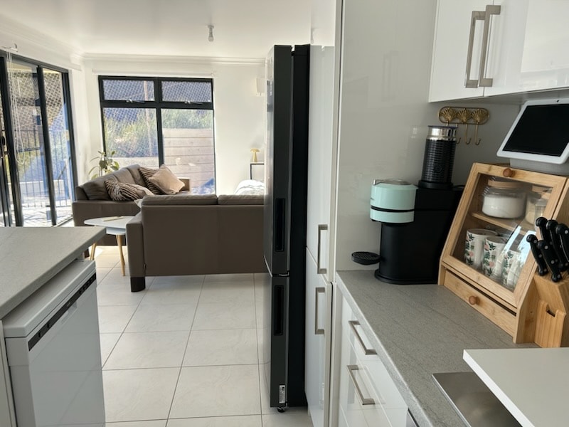 Impresionante apartamento tipo estudio independiente justo enfrente de la playa y con increíbles vistas al atardecer. Disfruta de una gran noche de sueño en la exuberante cama tamaño king, desayuna en la barra de desayuno de goma roja con vistas al océano y a los acantilados de color ocre rojo de Pt Noarlunga, o tal vez una copa de vino mientras el sol se pone sobre el océano, seguido de un día en McLaren Vale. Ofrecemos artículos frescos para el desayuno que puedes preparar: pan casero, leche fresca, café molido, té, huevos de granja, tomates, muesli y condimentos.