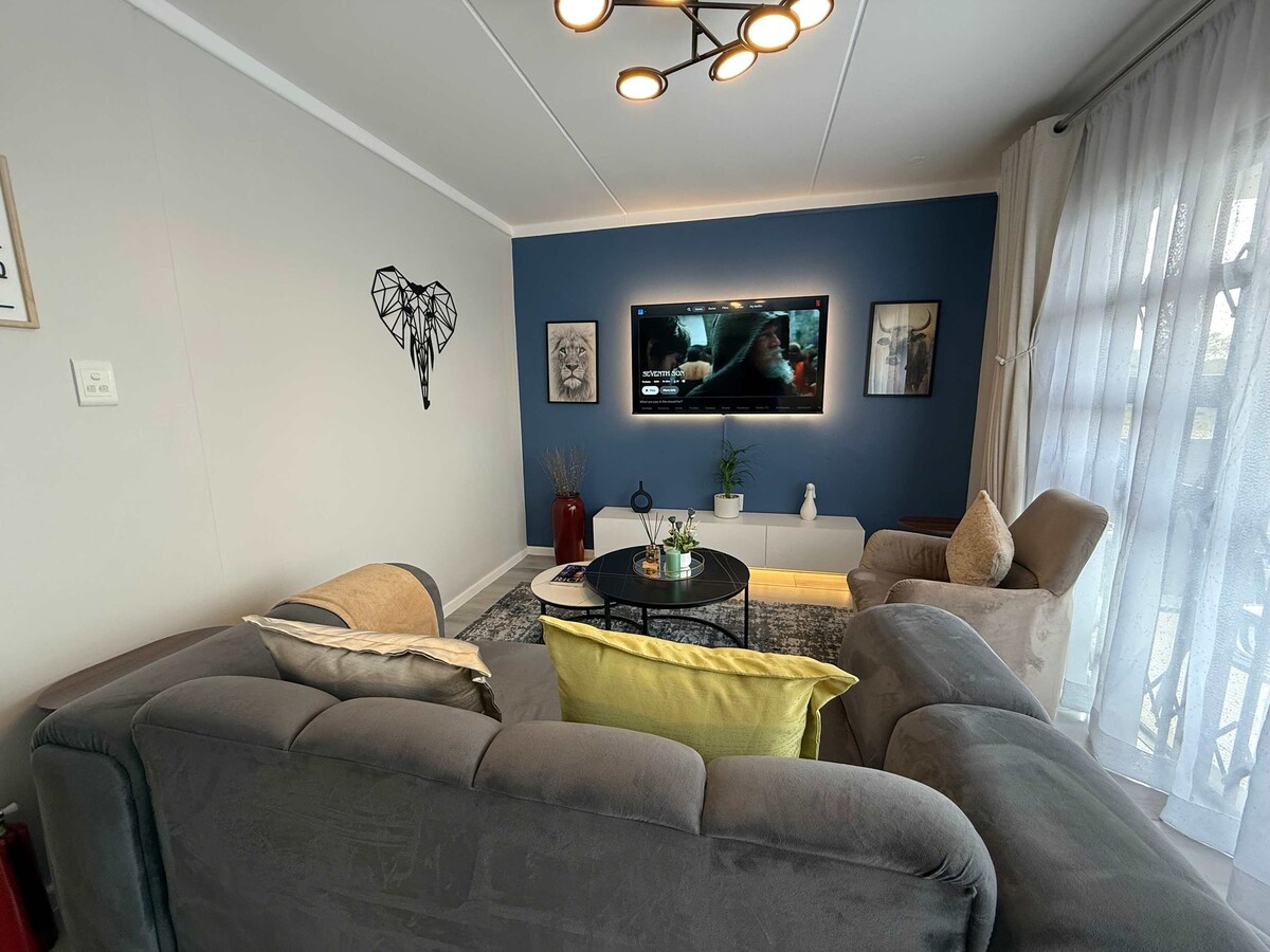 Disfruta de un espacio recientemente renovado y muy elegante en un campo de golf de primera en el centro de Centurion. Un entorno tranquilo con vistas al río Hennops y al séptimo green. Convenientemente ubicado entre Johannesburgo y Pretoria, a 4 km del Gautrain. Los centros comerciales Mall of Africa, Centurion Mall y Menlyn Mall están cerca. Uber es abundante aquí. Muchos centros, tiendas, restaurantes y pubs de primera categoría cerca. Excelentes vistas, instalaciones para barbacoas, zonas para correr y montar en bicicleta. ¡Anfitriones amables! Energía de respaldo completa y agua