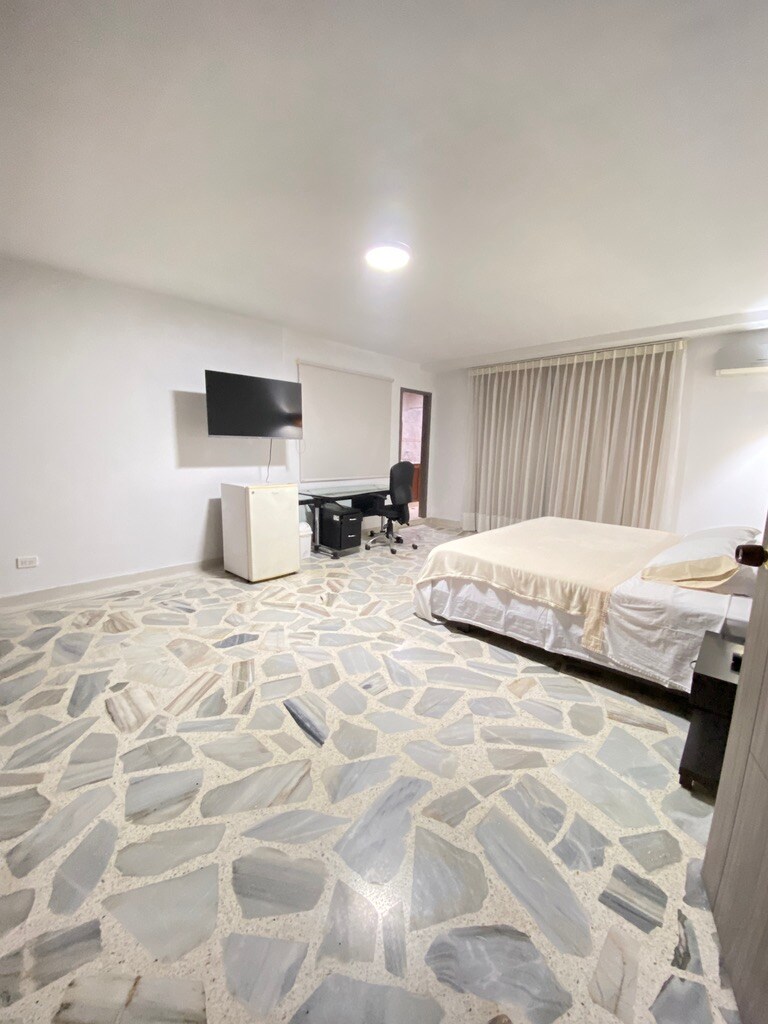 Hospédate en una habitación privada con cómoda cama doble, baño propio, aire acondicionado, TV, minibar y wifi rápido. La reserva incluye acceso a las zonas comunes: cocina equipada con cafetera, terraza y hamaca. Contamos con vigilancia 24/7 y restaurante en el hotel. No tenemos parqueadero, pero te recomendamos uno cercano (costo aparte). Ideal para viajes de trabajo o descanso en el norte de Cali.