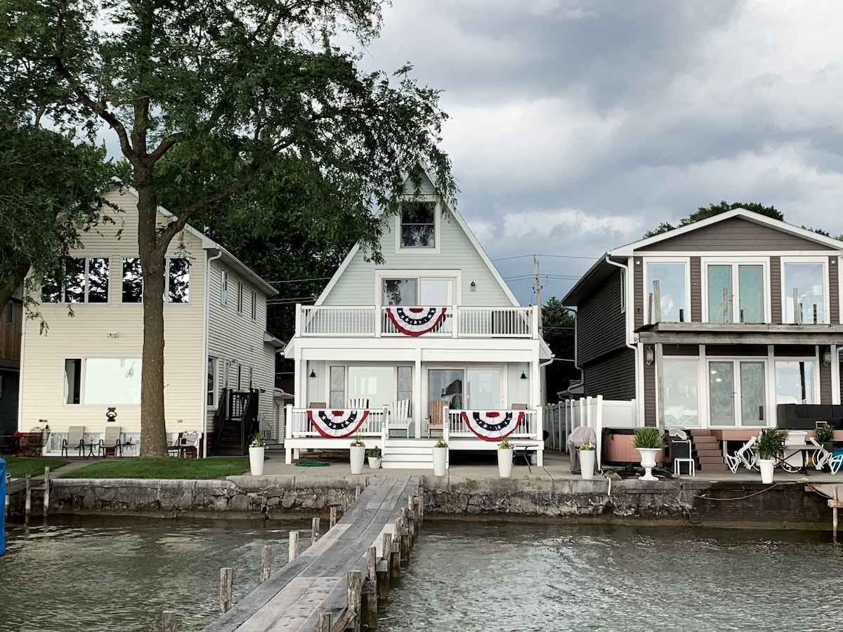 Casa rural con vistas al lago y acceso a la rampa de botes enfrente.