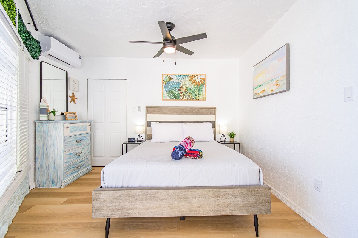 Bienvenido a Beach Boutique, un refugio de lujo escondido en el corazón de Indian Rocks Beach, Florida. Este refugio de 2 dormitorios y 1 baño, bellamente amueblado, ofrece una experiencia vacacional elevada. Da un paseo de un minuto al otro lado de la calle hasta la playa de la costa del golfo, donde podrás disfrutar de impresionantes puestas de sol. Tu estancia en Beach Boutique promete ser una mezcla perfecta de lujo y relajación.