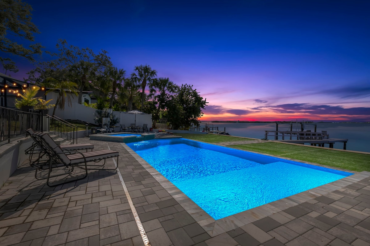 Mid Mod Waterfront Home with Pool + Hot Tub