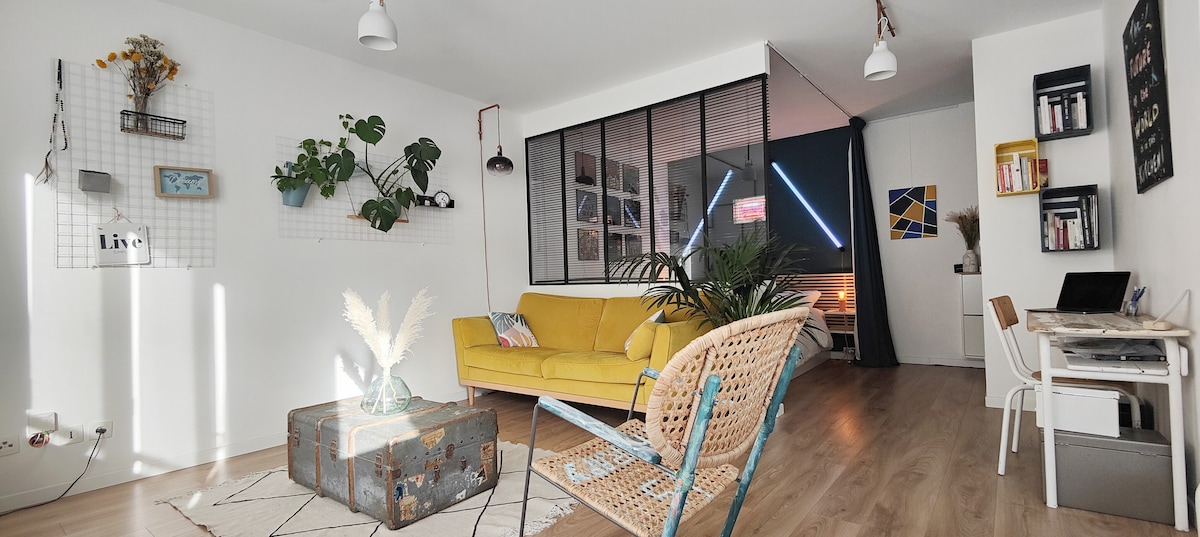 Encantador estudio de 37 m2, muy bien decorado y situado en el corazón de la ciudad de Clichy. Zona tranquila y cerca del metro mairie de Clichy (3 min). Se trata de mi residencia principal, que alquilo durante mi ausencia. Apartamento ideal para personas que viajan solas y parejas. Apartamento cómodo, luminoso y totalmente equipado. Te sentirás como en casa. Como esta es mi residencia principal, busco encontrar viajeros de confianza y, por supuesto, respetuosos.