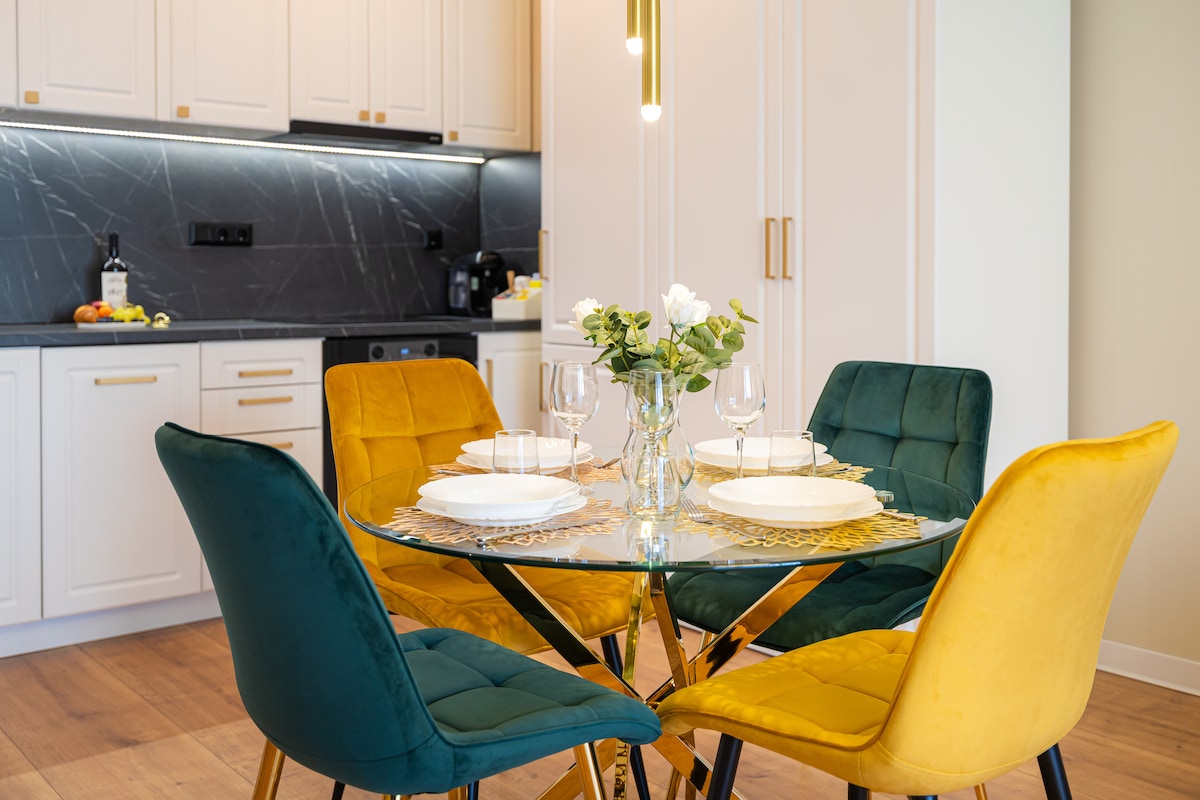 Acogedor apartamento en el corazón de Cluj-Napoca, situado a 2 minutos a pie de la plaza Unirii o de la plaza de los Museos, muy cerca de varias cafeterías, restaurantes, museos y del Parque Central, todos ellos de primera categoría. Amplio salón elevado. Dormitorio minimalista, con conexión directa al baño. El baño tiene una bañera de tamaño mediano, gel de ducha, toallas y secador de pelo. Cocina apta para cocinar y comedor generoso. ¡Perfecto para una escapada a la ciudad con familiares o amigos, o incluso estancias más largas!
