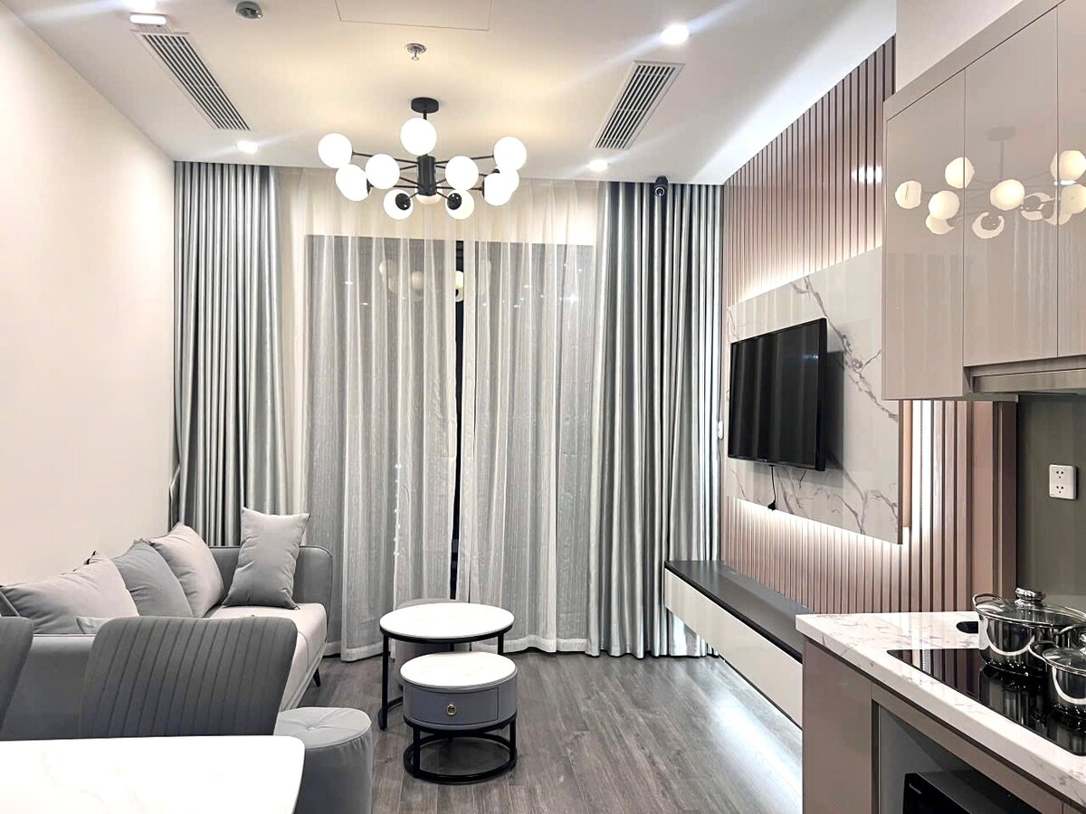 Vacaciones cómodas: ¡Lavadora/Secadora privada y gratuita incluida! Este 1BR elegantemente amueblado en The Zenpark Tower- VinHomes OceanPark. Es un edificio a estrenar que está diseñado para lo moderno y al aire libre. Sofás y colchones de✓ alta calidad para una estancia maravillosa. Olvídate de las molestias de alquiler baratas. ✓ Trabajo y recarga: espacio de trabajo, lavadora y cocina totalmente equipada.