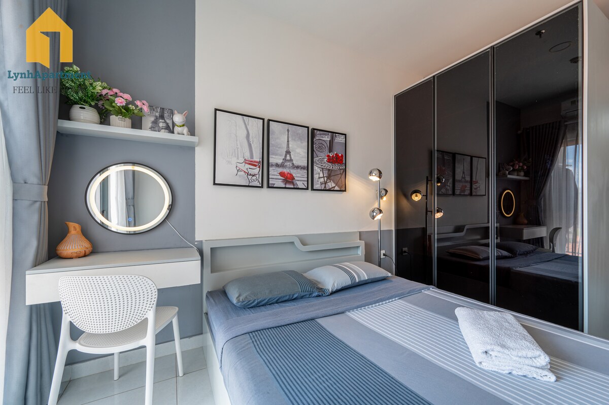 El departamento está bellamente diseñado en estilo del norte de Europa ubicado en el piso 33, el piso más alto de un edificio, la nueva Residencia Soho en el Distrito 1, de estilo artístico. Tanto la ventana del dormitorio como el balcón tienen una vista panorámica de toda la ciudad. El río a lo largo del hermoso bulevar, un apartamento único con hermoso espacio, tiene 1 salón grande, 1 comedor, 1 habitación, cómoda cocina, 1 balcón de mesa de té, 1 zona de secado de ropa, 1 aseo, 2 dormitorios grandes, 2 camas grandes, para 5 personas, totalmente amueblado.