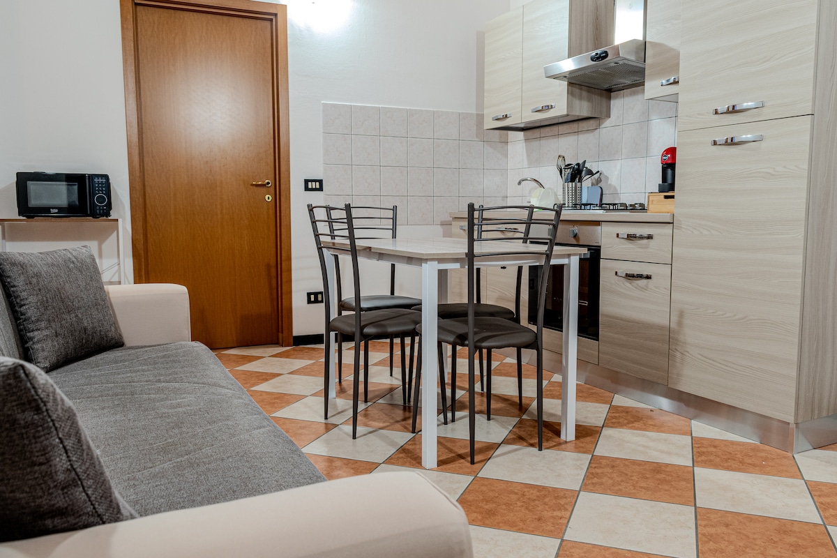 Mini appartamento completo di tutto, Self Check-In, Wi-Fi, aria condizionata, riscaldamento a pavimento. Porzione centrale di casa trifamiliare con giardino, no condominio, zona tranquilla ma servita dai principali servizi ( supermercato a 100 metri ) Mini apartment complete with everything, Self Check-In, Wi-Fi, air conditioning, underfloor heating. Central portion of a three-family house whit garden, no condominium, quiet area but served by the main services (supermarket 100 meters away)