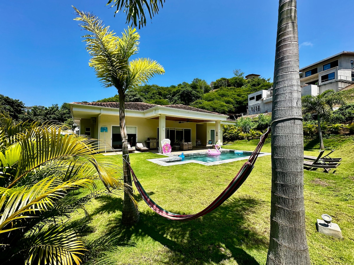 ¡Una de las mejores vistas al mar y a la montaña de Playas del Coco! ¡Damos la bienvenida a todos! Perfecto para parejas, familias y trabajadores remotos. Casa totalmente equipada, ubicada en la cima de una montaña dentro de una comunidad cerrada, a 10 minutos a pie de la playa. Tiendas de comestibles, restaurantes y tiendas cercanas. A poca distancia en coche del aeropuerto de Liberia (20 minutos). Disfruta de un concierto de pájaros y monos cada atardecer y amanecer, espectaculares vistas de las puestas de sol de Playas del Coco. ¡Cerca de la naturaleza, pero no muy lejos de los servicios!