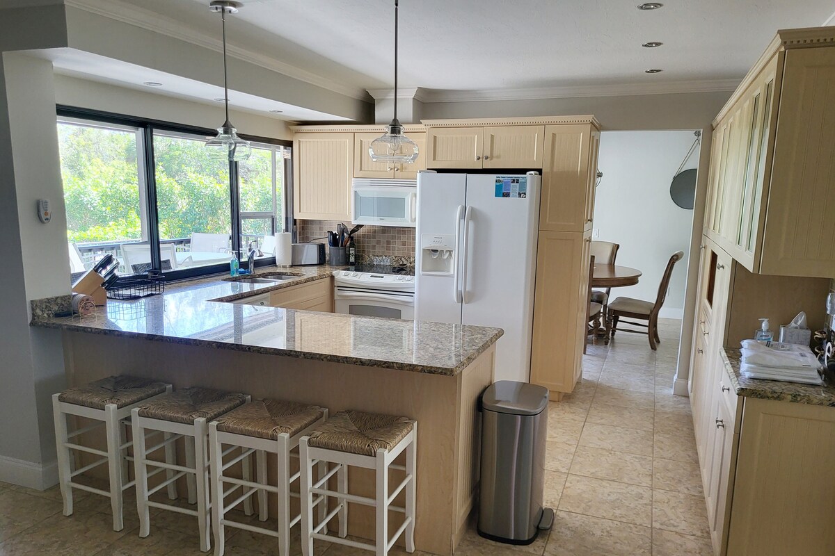 Unique Waterfront Condo & Gorgeous Intercoastal Views, Wildlife, Fishing, Boat Dock. 1 block from Snook Inn! Adjacent Pool Steps Away from Patio. NEWLY REMODELED! Pool & 2 Private Patios overlook Beautiful Waterfront, Dolphins, Manatees, Exotic Birds. Main Floor -no steps. If you love water and WILDLIFE, this place is for you! Fishing on the dock-Fishing Poles and Tack Supplied, pull your boat right to the back door. TONS of wildlife. Dock is lit at night, watch the sea life! NON SMOKING UNIT