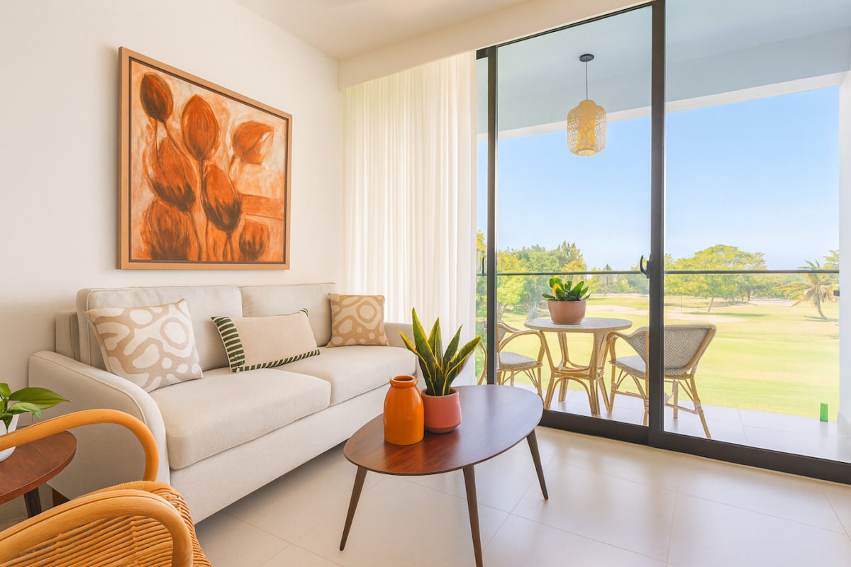 Stylish 2 Bedroom Retreat in Cocotal Welcome to your tropical getaway in Bavaro, Punta Cana! This spacious apartment features stunning golf course views from both bedrooms and offers direct access to the pool from the terrace. Enjoy the peaceful atmosphere and make the most of the nearby golf course for a round of golf. Just 7 minutes from the beach and 15 minutes from the airport, this beautifully designed retreat is perfect for relaxation or adventure. We look forward to your visit!