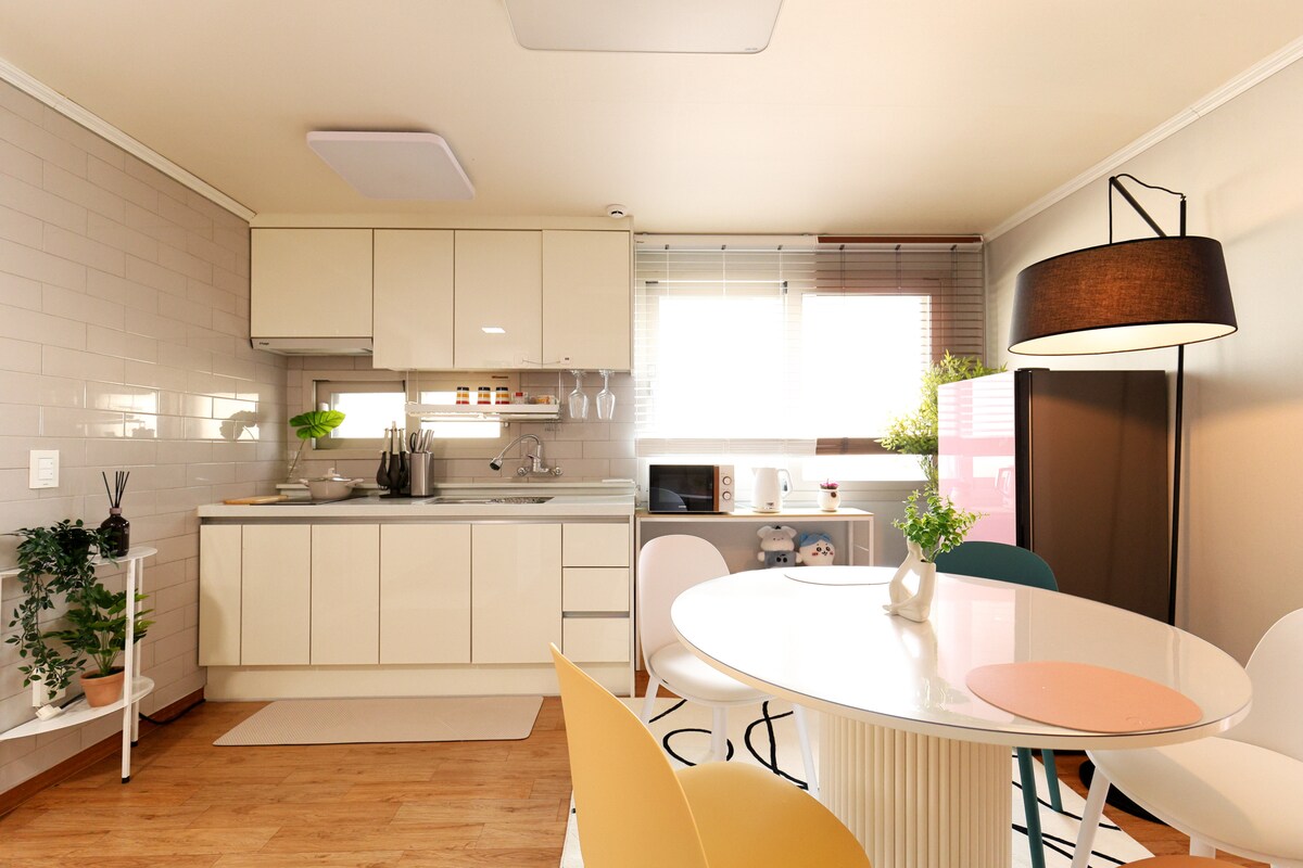Limpio y acogedor | Estacionamiento gratuito para 1 vehículo | A 5 minutos de la estación Samsung Jungang | Ambiente de hotel para 4 personas | Salida a las 14:00