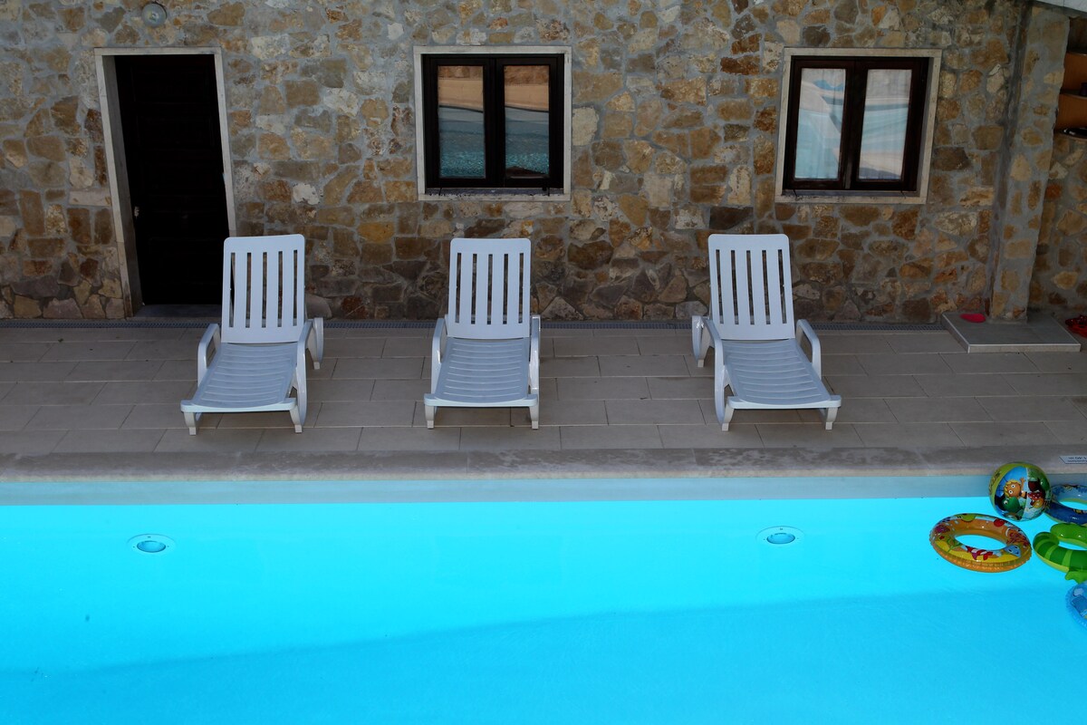 ¡Disfruta de tus vacaciones en esta encantadora casa de vacaciones con un gran jardín y piscina privada! La casa tiene un gran salón en la planta baja con cocina abierta y mucha luz a través de las puertas del jardín. En la planta superior hay 4 dormitorios y 2 baños, uno de ellos con bañera. La casa está rodeada por un gran jardín con olivos y árboles frutales. En la parte trasera de la casa hay una zona de barbacoa cubierta y una amplia piscina privada de agua salada de 10 x 4 metros. ¡Buenas vacaciones!