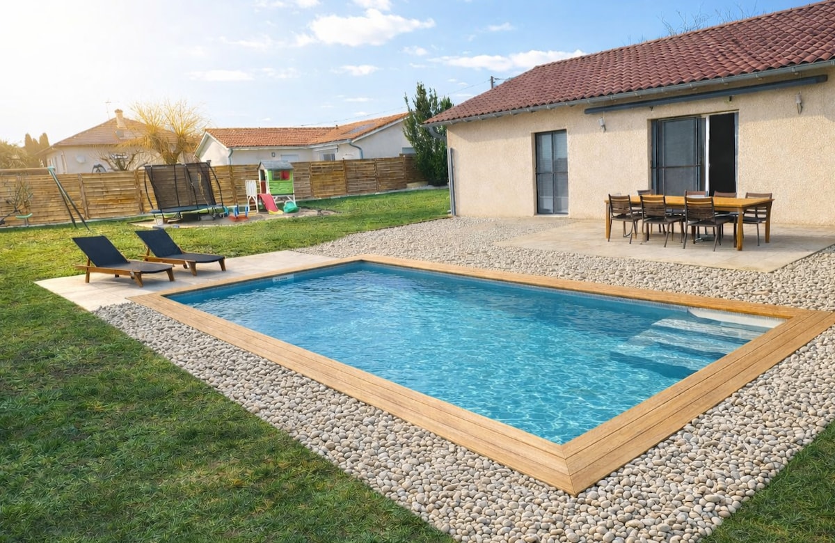 ⭐🅿️⭐T4 ⭐Villa indépendante avec WIFI de 95m2 ⭐ 3 Chambres - literie très confortable ⭐3 Salles de bains ⭐ Entrée dans le logement autonome ⭐Les draps et serviettes inclus ⭐Propriété privée au porte de Bourg-en-Bresse ⭐Terrasse privatif ensoleillé . ⭐🅿️Grand parking sécurisé par un portail électrique Ce logement ce trouve sur une cours de 1200m2 clôturé partagé avec d'autres logement. 🔐 🤩Nous ferons en sorte que votre séjour soit inoubliable!