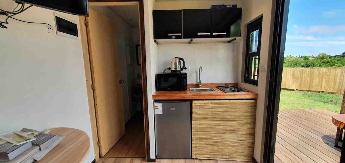 Un espacio único en medio de la nada. En el pueblo de Riachuelo, a solo 12 km de la ciudad de Colonia del Sacramento. 40m² de confort con todo lo necesario para un descanso absoluto en un predio de 5 hectáreas. Playita frente al arroyo donde si quieres puede nadar, pescar y si traes un kayak disfrutar el lugar a pleno. Pesca recreativa. Parrilla. Avistaje de pájaros. Piscina.
