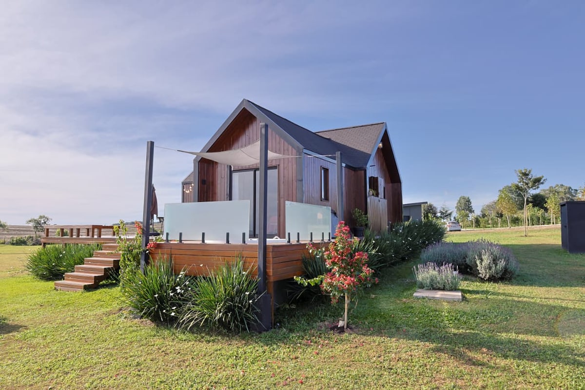 ¡Nuestra cabaña de contenedores es un refugio en la naturaleza! ¡Con aire acondicionado y automatizado, tiene una bañera de hidromasaje, cama gigante, barbacoa, cocina completa y está a solo 20 minutos de Curitiba! Fácil acceso y ubicación privilegiada en Campo Largo/PR. ¡Duerme con el silencio del campo y despiértate con el sonido de los pájaros! --> ¡Perfecto para tener un momento especial con tu amor! - CABAÑAS NINHO DO QUERO-QUERO -