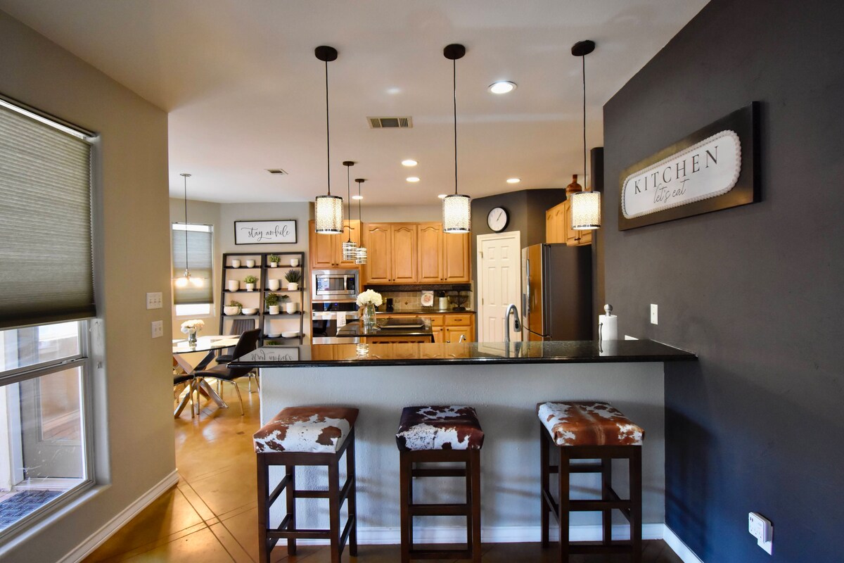 ✨Timeless-Texas-Inn✨ • ¡Un patio trasero expansivo ahora con⛳ minigolf! - 🔥Piscina climatizada 🌊 - ¡Barbacoa y un montón de juegos para la máxima diversión texana! • Por la noche, el patio trasero brilla con las luces de la cafetería,🔥 fogatas y un impresionante cenador, que irradia una decoración y un encanto ATEMPORALES. • NUEVA SALA DE CINE 🎦🍿 - 🎮Sala de juegos - 🎱Mesa de billar - 🎯Dardos - Videojuegos y juegos de mesa: ¡creando el espacio ideal para que los grupos creen recuerdos duraderos en un entorno perfecto! • A 8 minutos de KALAHARI • A 12 minutos de Domain • A 20 minutos de AUSTIN 🎸🎶