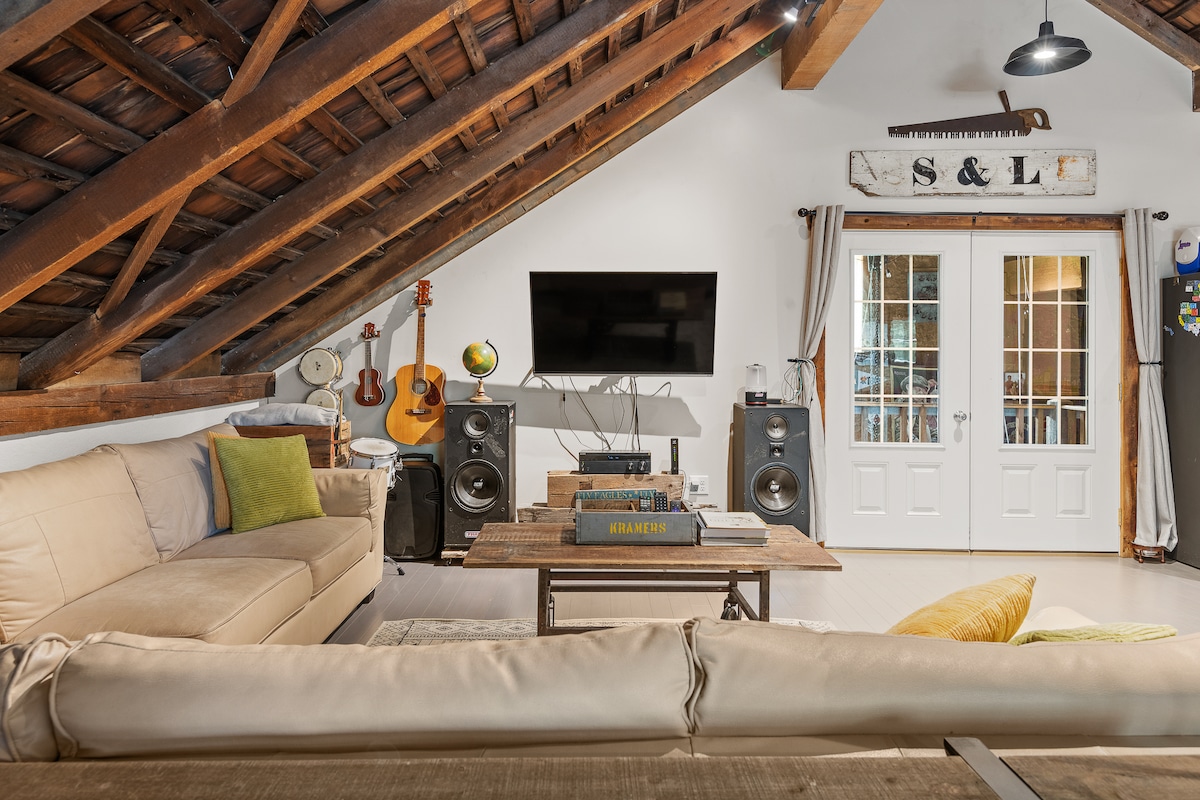 Bienvenido a The Barn on Fox Alley, un pedazo de historia enclavado en el corazón de la ciudad de Lancaster. The Barn on Fox Alley es un garaje reacondicionado construido en 1999, transformado en un magnífico granero amish que rinde homenaje al rico patrimonio del condado de Lancaster. Entra y te encontrarás inmerso en la calidez y el carácter de una época pasada. El espacioso interior del granero está meticulosamente adornado con suelos reutilizados cortados a mano y madera de granero recuperada en todas partes.
