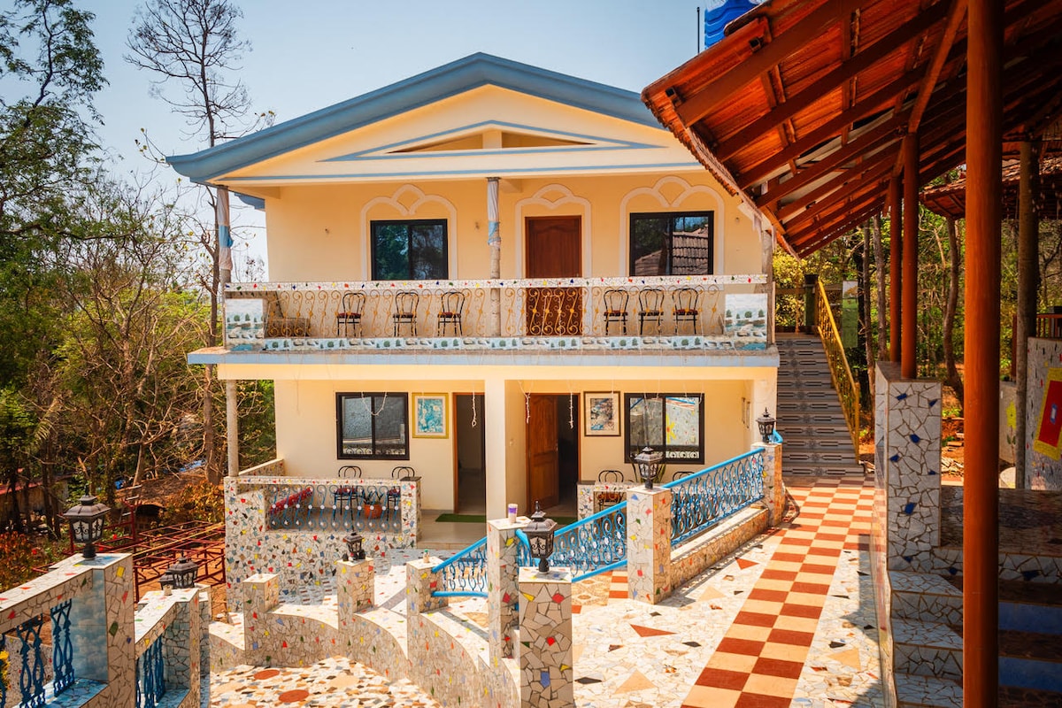 2,500ft² / 230m² Villa with a farm view ☞ 4 Balconies ☞ Farm view ☞ 4 KIng beds(master bedroom ☞ 4 King beds ☞ Parking (onsite, 2 cars) ✭“A clean and peaceful farm-view stay near Goa’s famous temples, where you’re treated like family and can truly feel the calm and spirituality of Goa.” ☞ wifi ☞ 4 Smart TVs ☞ Fully equipped kitchen ☞ Luggage storage available ☞ Onsite washer + dryer ☞ Air conditioning ☞ Refrigerator ☞ Kettle ☞Dinning table