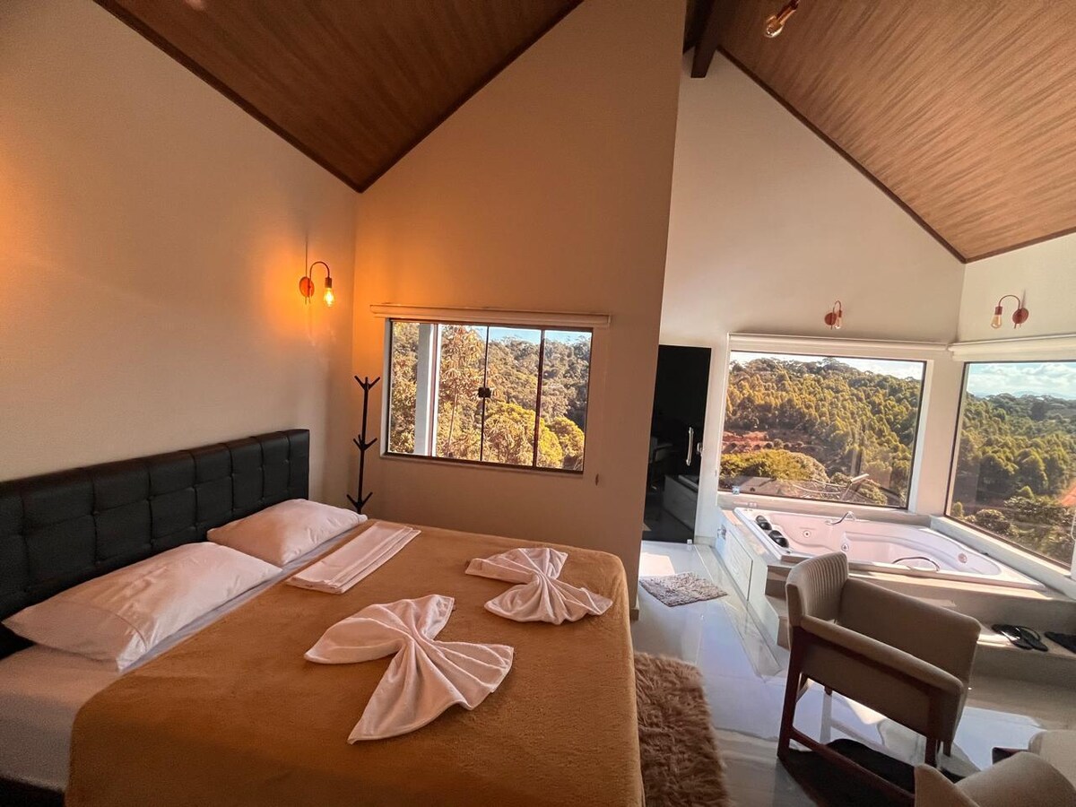 Chalé Bella Vista 03 – Vista, comodidad y naturaleza ¡Respira y deja que la naturaleza te abrace! Chalé Bella Vista 03 fue diseñado para aquellos que buscan días de descanso, contacto con la naturaleza y momentos inolvidables. Ubicado en un entorno privilegiado, rodeado de montañas y paisajes impresionantes, aquí te despiertas con el canto de los pájaros y te despides de cada día con una puesta de sol impresionante.