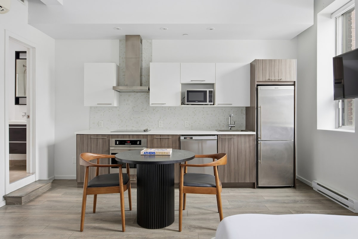 Estudio ideal para dos personas, Lujo y Sencillez en el corazón de Montreal te da la bienvenida a un apartamento refinado, amueblado con buen gusto y decorado con calidad. Cada detalle refleja la elegancia de la sencillez en cada rincón. Situado en la calle más chic y de moda del centro, es perfecto para una escapada romántica, una estancia turística o un viaje de negocios exclusivo.