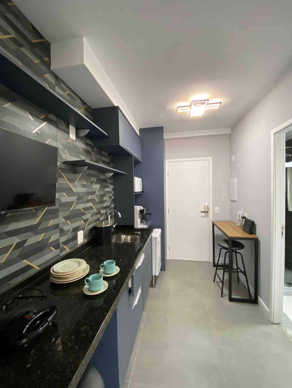 - Estudio de 22m²; - 350m del metro; - Aire acondicionado; - Wi-Fi; - Café expreso; - Microondas; - Air Fryer; - Heladera dúplex; - Cocina eléctrica, ollas y utensilios; - Filtro de agua; - Cama doble; - Ropa de cama y toallas de alta calidad; - Ducha caliente con alta presión; - Secador de pelo; - Balcón con mesa y sillas, con vistas; - Piscina y sauna en la azotea del edificio *Uso compartido* (cerrado los lunes por mantenimiento) - Aeropuertos: Congonhas (11 km), Guarulhos (26 km)