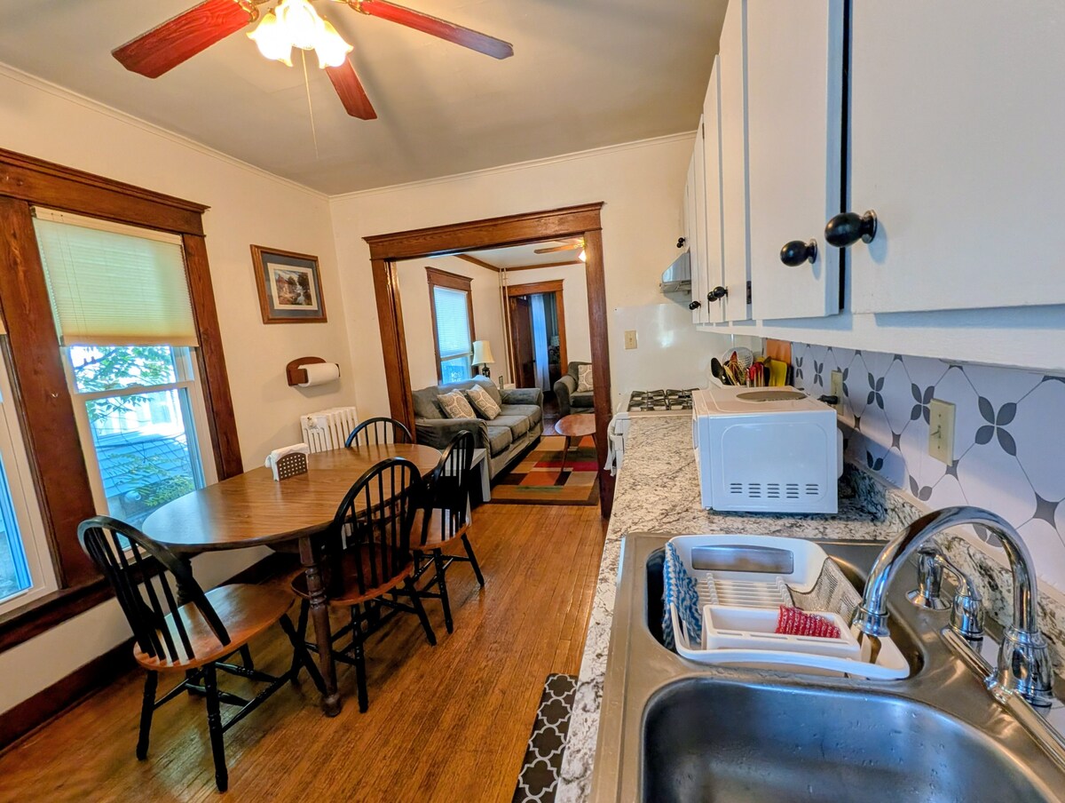 This renovated 120-year-old home, a full-time vacation rental, is perfect for guests attending glass classes at the museum. It's walkable to downtown Corning and 30 minutes from Watkins Glen. The second bedroom has a bunk bed suitable for toddlers or a 6-ft adult. Expect comfortable, quiet, and meticulously clean accommodations, with digital keypad check-in.