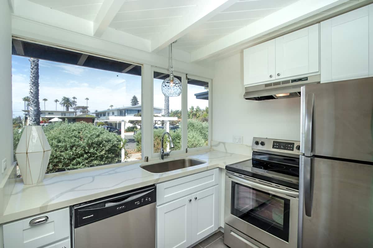 NEWLY REMODELED KITCHEN AND FLOORS Front row seats of Sunset Cliffs OCEANFRONT 180deg unobstructed view (2BR/2.5BA) Beach-themed open floor plan, over sized kitchen and gorgeous floors. Fast internet (AT&T 1G). Equipped with a whole house fan for the few warm nights in San Diego. Absolutely NO PARTIES and be respectful. Please don’t try to sneak past the number of guests. Sorry no pets. We’ve had one bad experience that cost us a lot of wasted time and money. No access to the garage