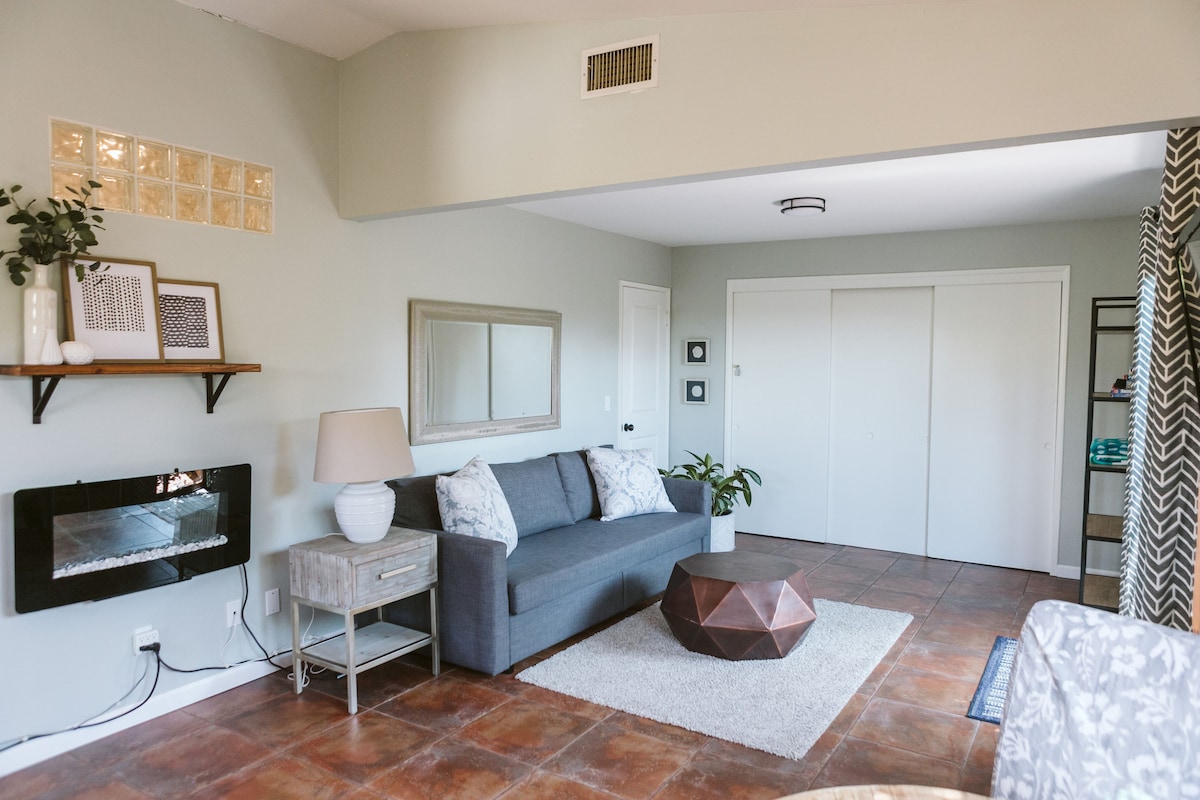 Disfruta de una escapada encantadora en esta suite de invitados bellamente remodelada y céntrica. Con su espacio de vida luminoso y acogedor, es perfecto para relajarse durante el día y se transforma en un acogedor refugio por la noche. Tiene capacidad para cuatro personas, el sofá se convierte fácilmente en una cama completa. A solo 10-20 minutos de lugares de interés como SDSU, Downtown, Little Italy, Gaslamp, San Diego Zoo, SeaWorld, Mission Bay y salas de conciertos. Esta es una unidad del segundo piso, por lo que los huéspedes tendrán que subir escaleras.
