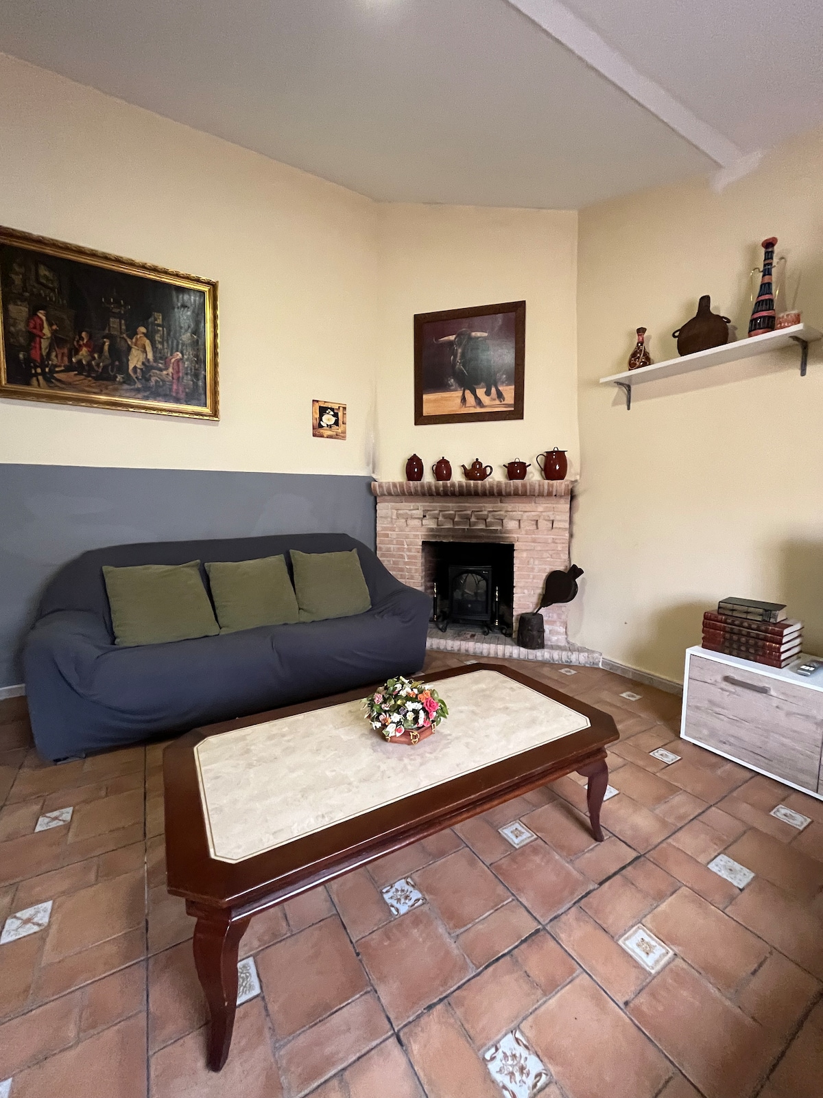 Antigua vivienda en el centro de Colmenar de Oreja adaptada a las necesidades de hoy en día. El alquiler de la vivienda es íntegra y podrás disfrutar de toda ella para ti, consta de dos apartamentos totalmente equipados con cocina, baño, salón comedor y terraza, con capacidad para 9 huéspedes. Además podrás disfrutar con la zona de bar, cueva, salas de ocio, patio interior con fuente, porche y patio exterior con barbacoa. Un remanso de paz al sur de la Comunidad de Madrid.