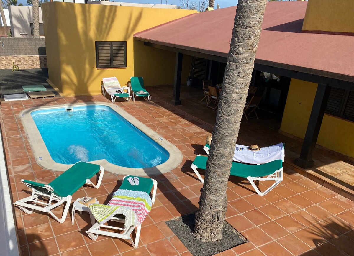 Casa indipendente composta da 2 camere, salotto e cucina,due bagni uno con doccia,piscina privata,forno per pizza e bbq,dispone di due terrazze di qui una con vista Lobos e Lanzarote.